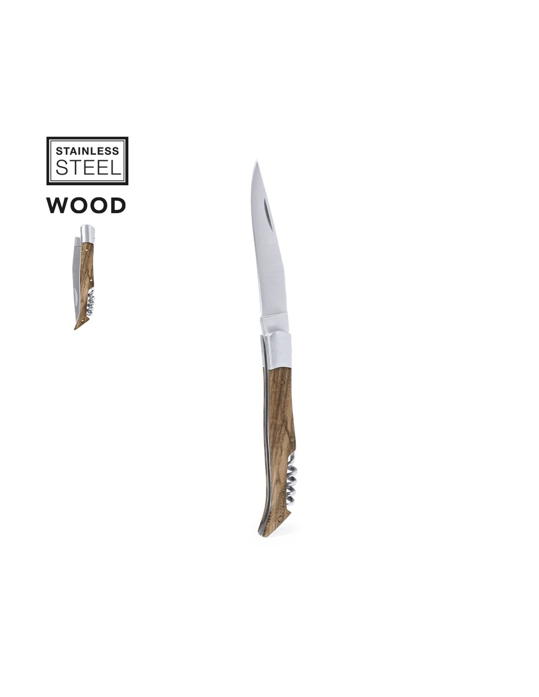 Navaja fabricada en resistente acero inox, con mango ergonómico fabricado en madera natural lacada y sacacorchos integrado. La aleación de la hoja garantiza resistencia a la corrosión y abrasión, siendo ideal para el uso frecuente con materiales duros. La hoja es de tipo punta de aguja, que se caracteriza por su forma puntiaguda, con la parte superior recta. Presentada individualmente en caja de diseño kraft.