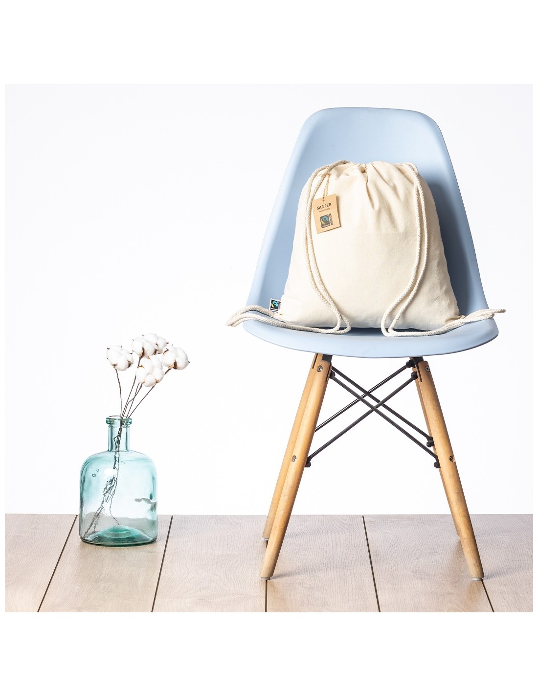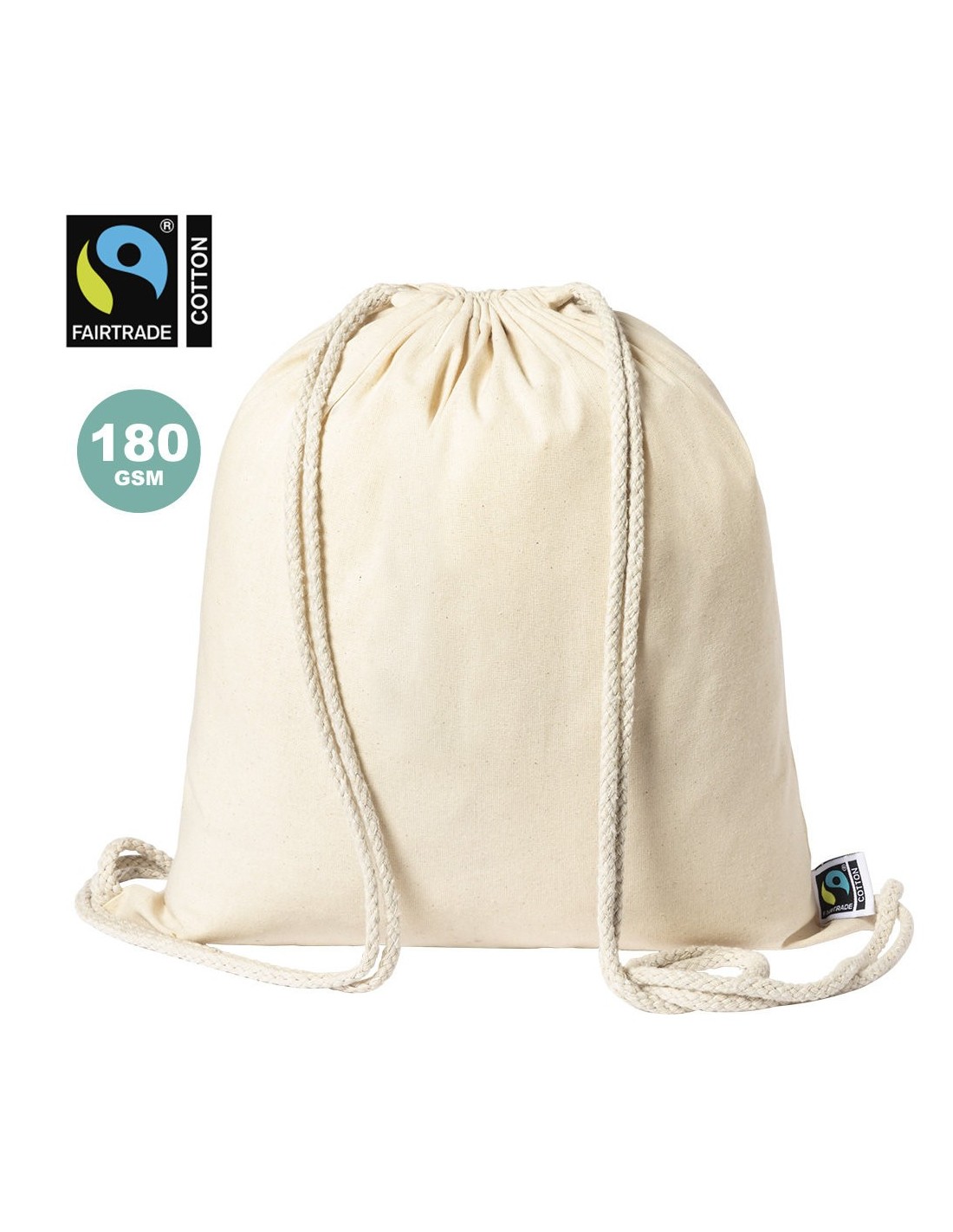 Mochila de cuerdas de línea nature, fabricada en 100% algodón de 180g/m2 en tono natural. Con certificación Fairtrade (Comercio Justo) un sistema comercial solidario y alternativo al convencional que persigue el desarrollo de los pueblos y la lucha contra la pobreza. De acabado cosido, cordones de algodón y resistencia hasta 9kg de peso. Incluida etiqueta Fairtrade y hangtag distintivo en cartón reciclado.