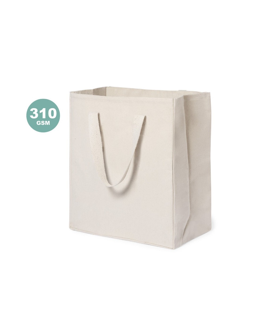 Bolsa XL de gran capacidad fabricada en algodón 100%, de acabado natural y en gramaje extra de 310g/m2. De acabado cosido y con fuelle. Asas largas extra anchas y reforzadas (72 x 3,5 cm). Resistencia hasta 10 kg de peso.