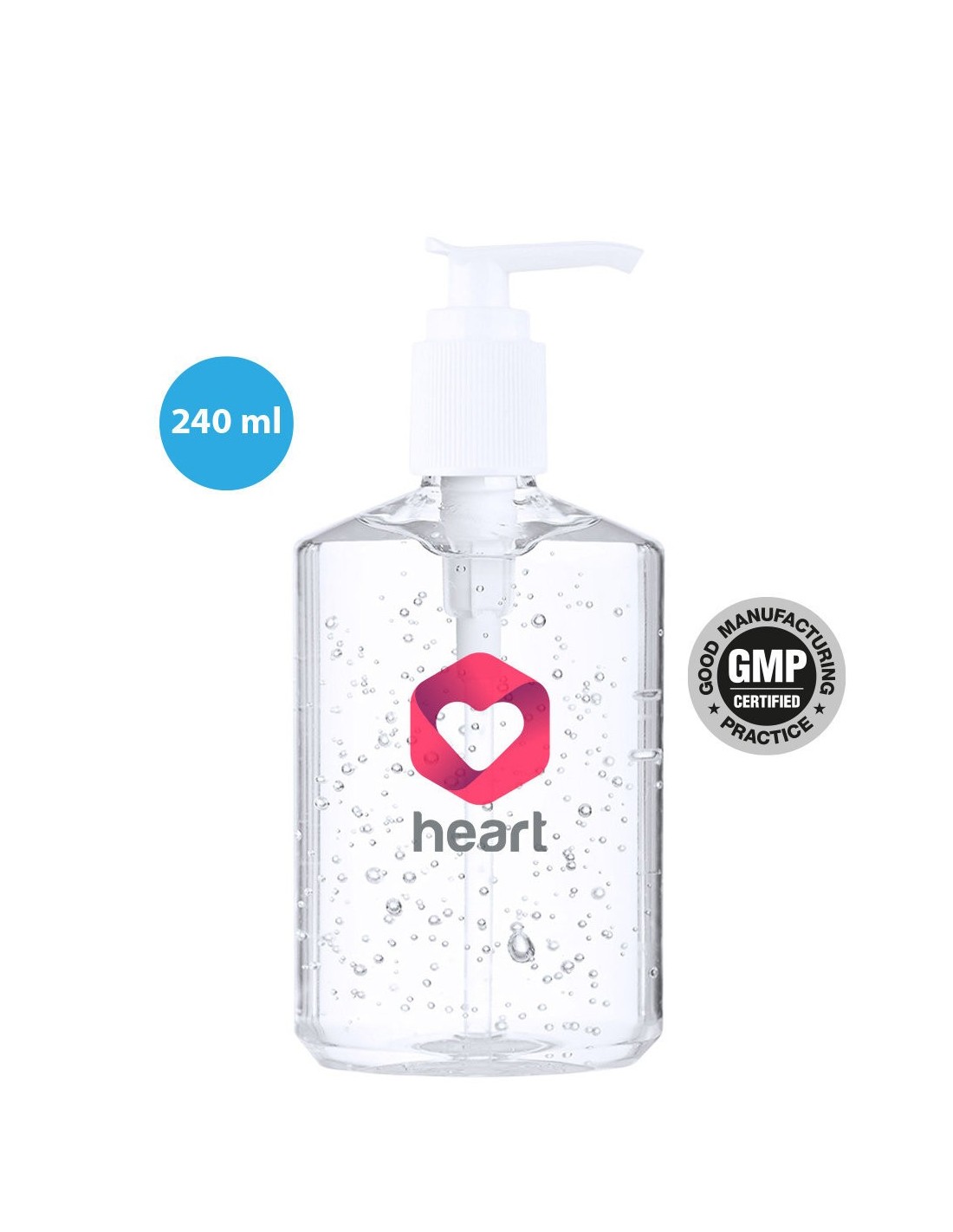 Gel hidroalcohólico para higiene y limpieza de la piel en bote rellenable de 240 ml, con dosificador de seguridad y cuerpo transparente. Solución con 65% de contenido de alcohol. Artículo con certificación GMP (Good Manufaturing Practices / Normas de Correcta Fabricación) que garantiza el cumplimiento de rigurosas medidas de control para la obtención de un producto seguro y de calidad.