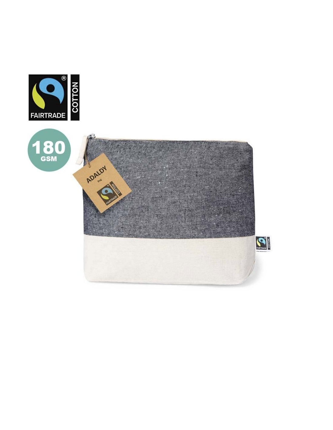Neceser de línea nature, fabricado en algodón 100%. Con certificación Fairtrade (Comercio Justo), un sistema comercial solidario y alternativo al convencional que persigue el desarrollo de los pueblos y la lucha contra la pobreza. Compartimento principal con cierre de cremallera y tirador a juego, con base en tono natural y parte frontal superior disponible en tonos negro y natural. Incluida etiqueta Fairtrade y hangtag distintivo en cartón reciclado.