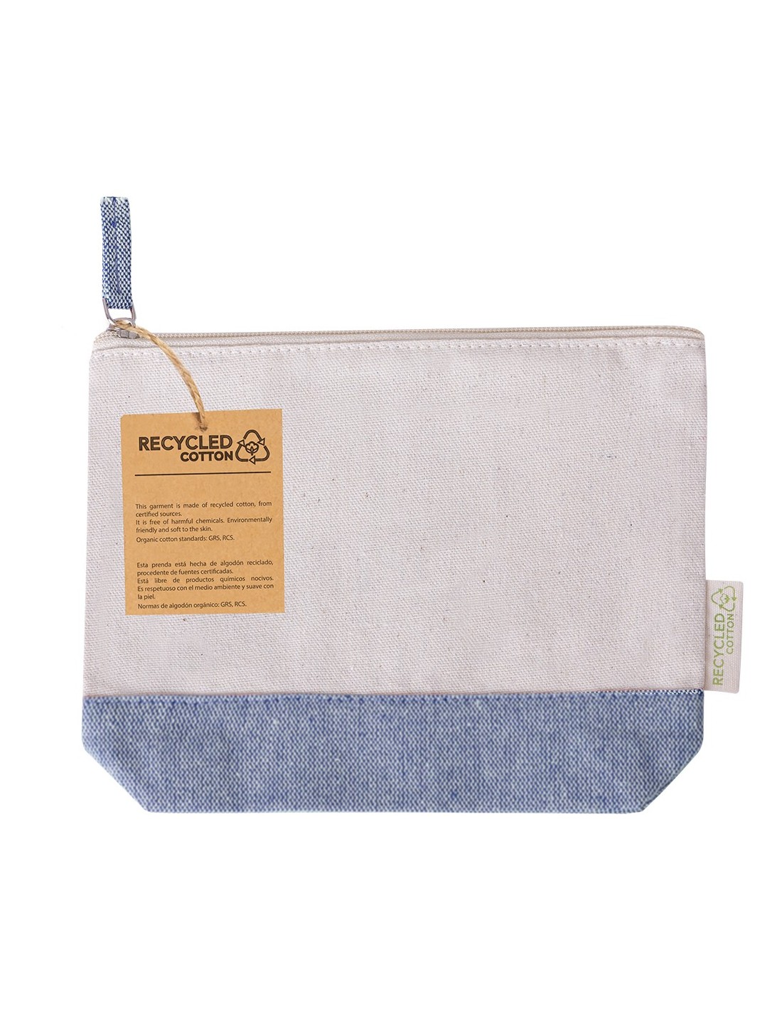 Neceser elaborado en algodón reciclado. Compartimento principal de cierre de cremallera y tirador de color a juego con la base. Disponible en variada gama de vivos colores. Con logotipo algodón reciclado en etiqueta.