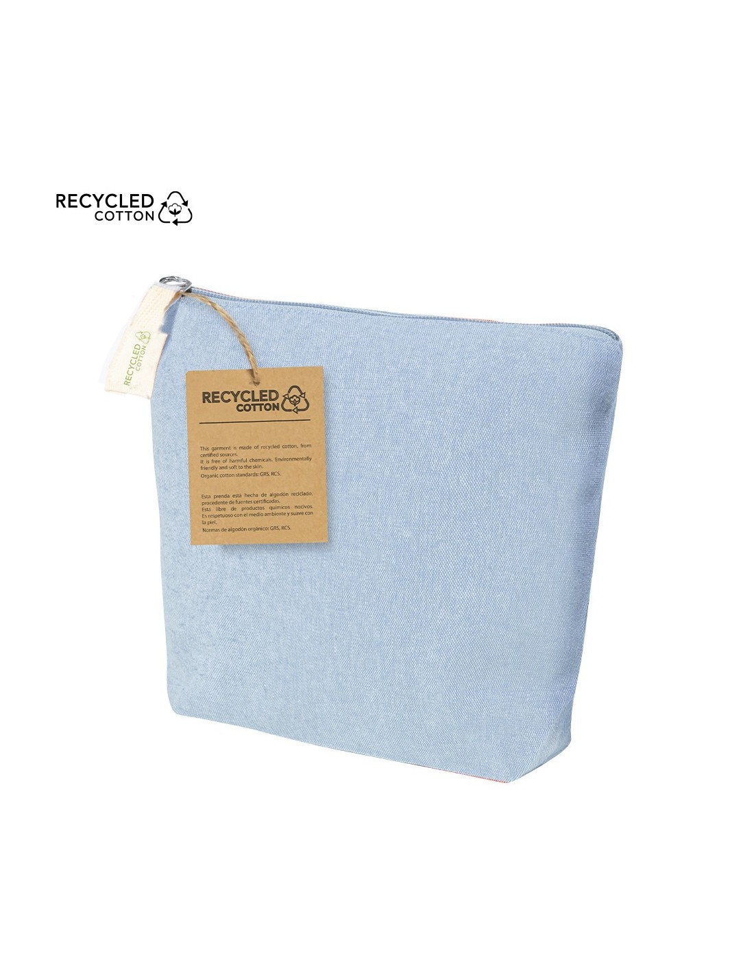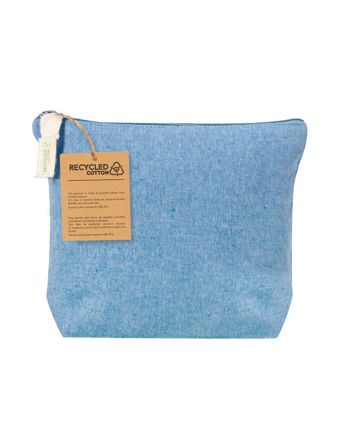 Estuche elaborado en algodón reciclado. Compartimento principal de cierre de cremallera y tirador de color natural. Disponible en variada gama de vivos colores. Con logotipo algodón reciclado en etiqueta y presentado en bolsa individual reciclada.