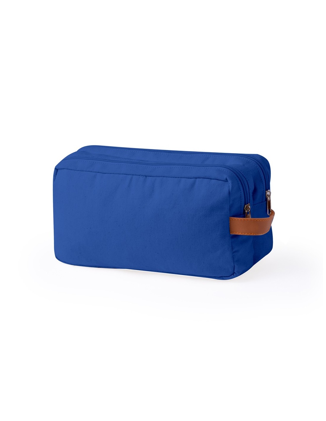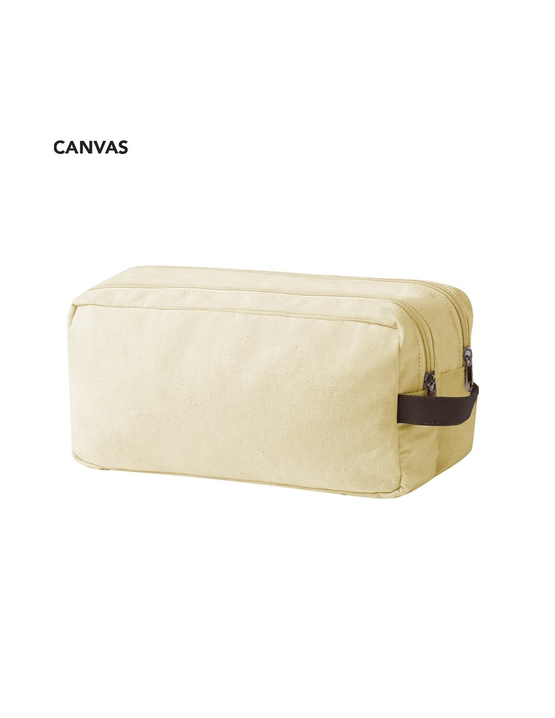 Neceser de doble compartimento fabricado en resistente canvas. Con cierre de cremallera, tiradores y asa en polipiel marrón. Disponible en elegantes colores.
