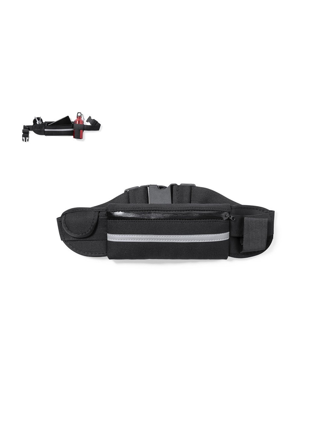 Riñonera de alta calidad fabricada en resistente soft shell (neopreno), con tira reflectante. Compartimento principal con cierre de cremallera, soporte elástico para bidón y bolsillo para llaves y otros pequeños objetos. Con cierre de hebilla y cinta ajustable, especialmente diseñada para actividades deportivas y de ocio.