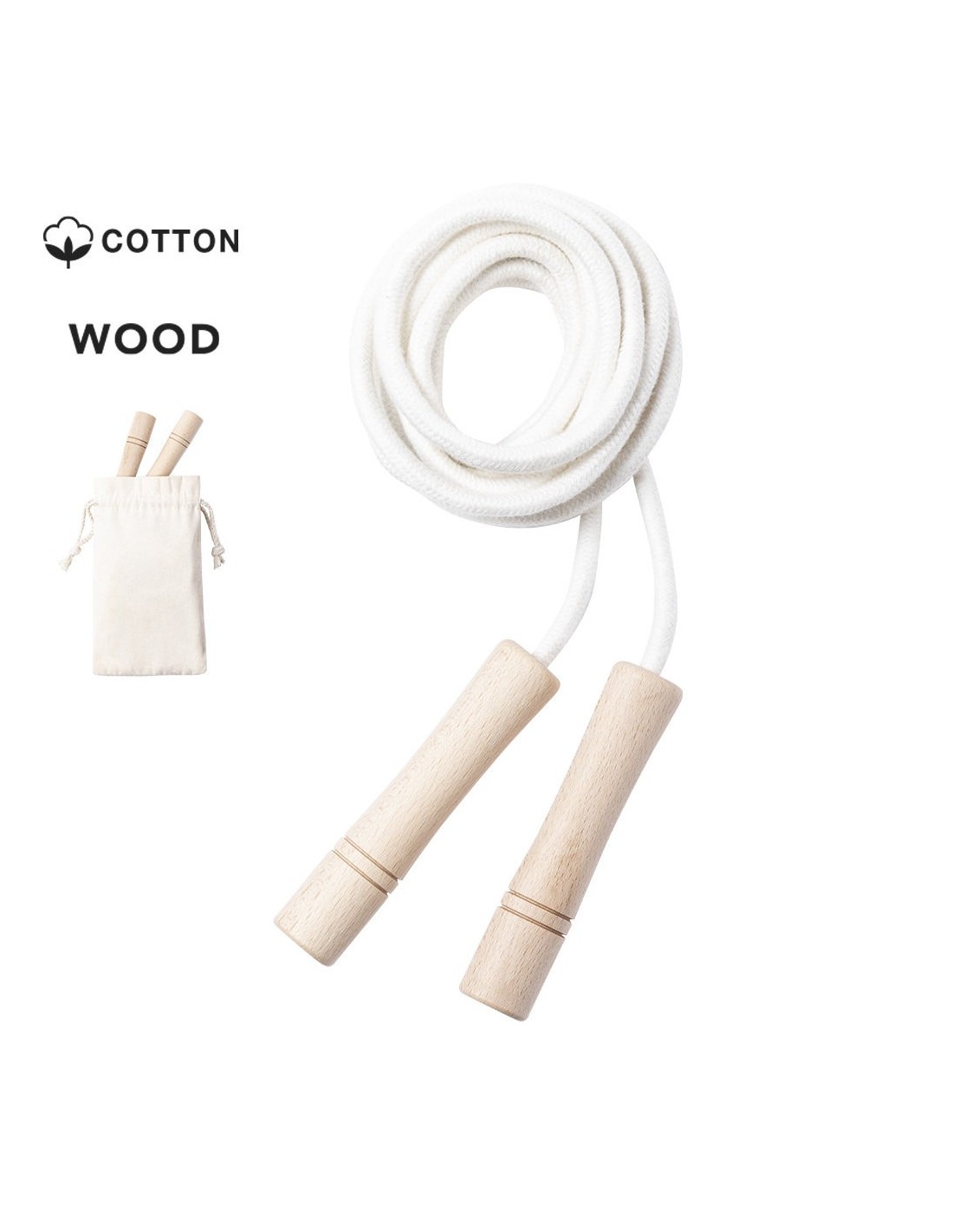 Comba de línea nature, con cuerda extra larga de 3m fabricada en algodón de acabado natural. Mangos ergonómicos fabricados en resistente madera de haya y presentada en funda de algodón natural con cierre de cordón.