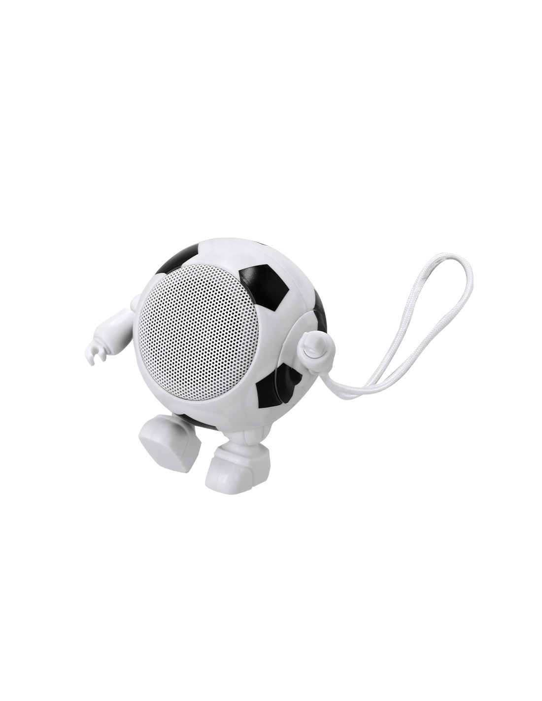 Altavoz con original diseño de balón de futbol bailarín fabricado en ABS. Con conexión Bluetooth® 5.3 y 3W de potencia, y batería de 500 mAh a través de cable USB-Tipo C incluido. Incluye práctica y divertida asa de transporte, para ir con la música a todas partes.