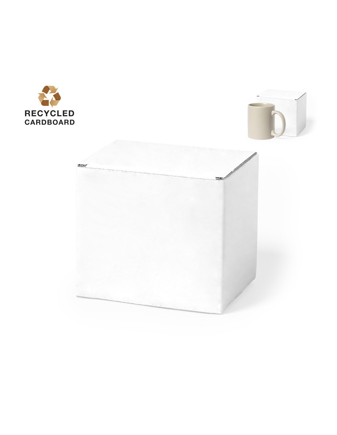 Caja de presentación especialmente diseñada para tazas. Tamaño 12x10,6x9 cm y fabricada en cartón reciclado corrugado de acabado blanco. En línea con la tendencia del mercado hacia la sostenibilidad integral del regalo, ofreciendo soluciones de origen reciclado con el fin de ayudar a la mejora y conservación de nuestro planeta.