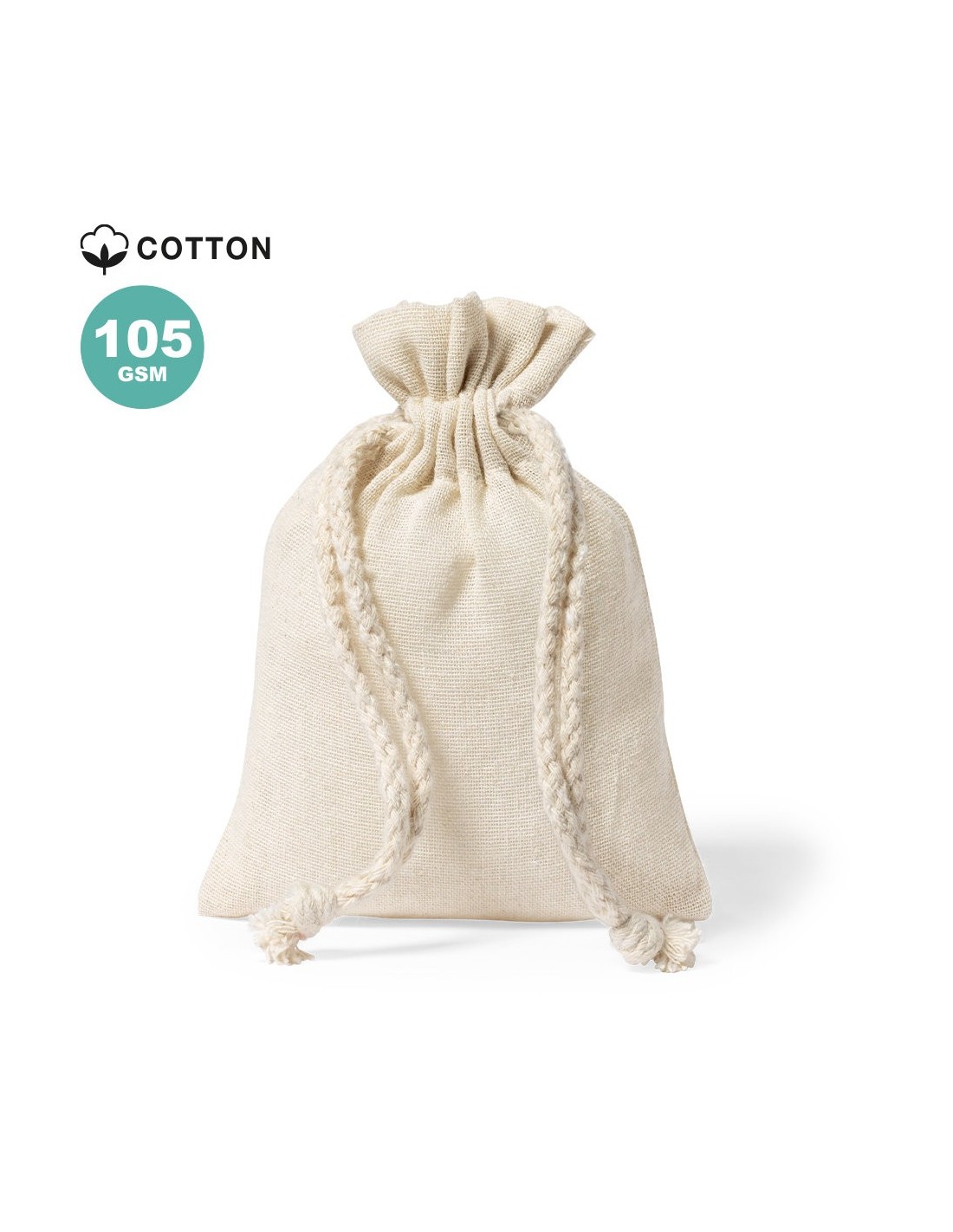 Bolsita de línea nature y tamaño 10x14 cm. Con cierre de cordón y fabricada en material 100% algodón de 105g/m2. Fácil marcaje y especialmente diseñada para pequeños objetos.