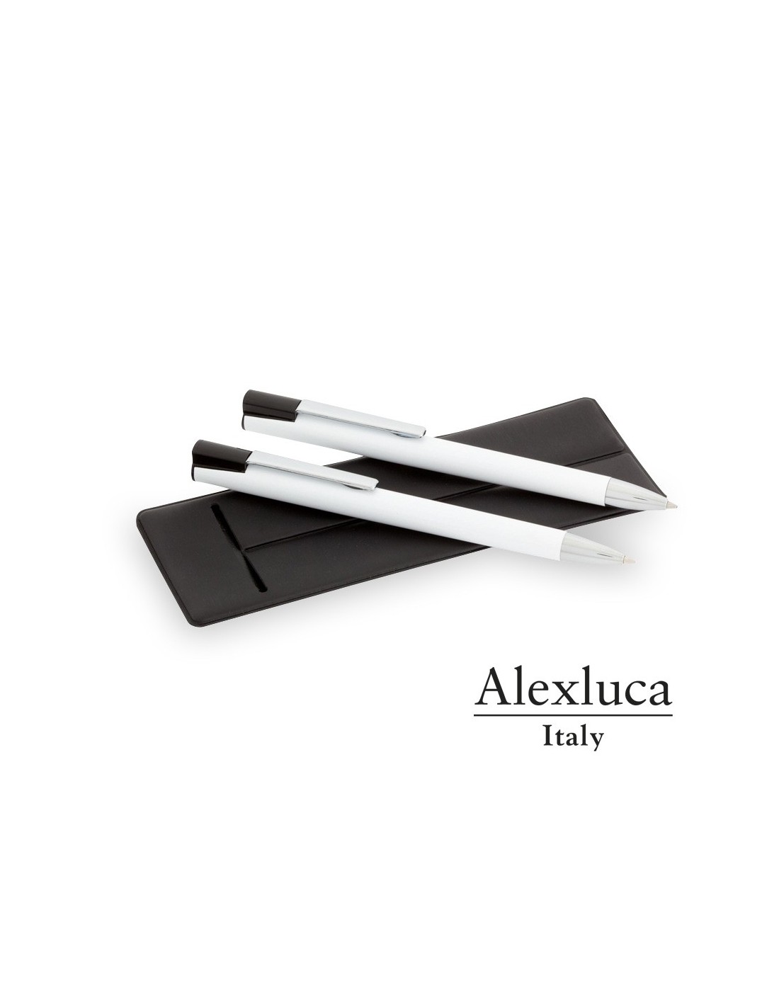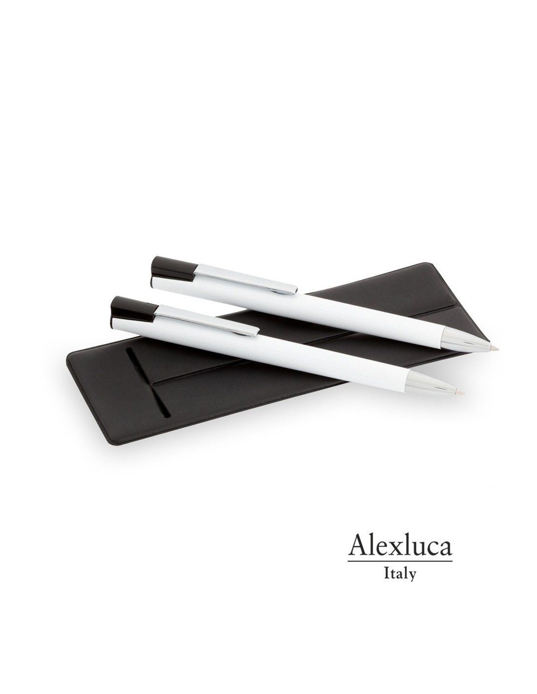 Elegante set de bolígrafo de mecanismo pulsador y portaminas en sobrio diseño bicolor. De cuerpo en acabado brillante, con clip y punta en plateado. Presentado en elegante funda individual de polipiel de color negro. Bolígrafo de cartucho jumbo con tinta