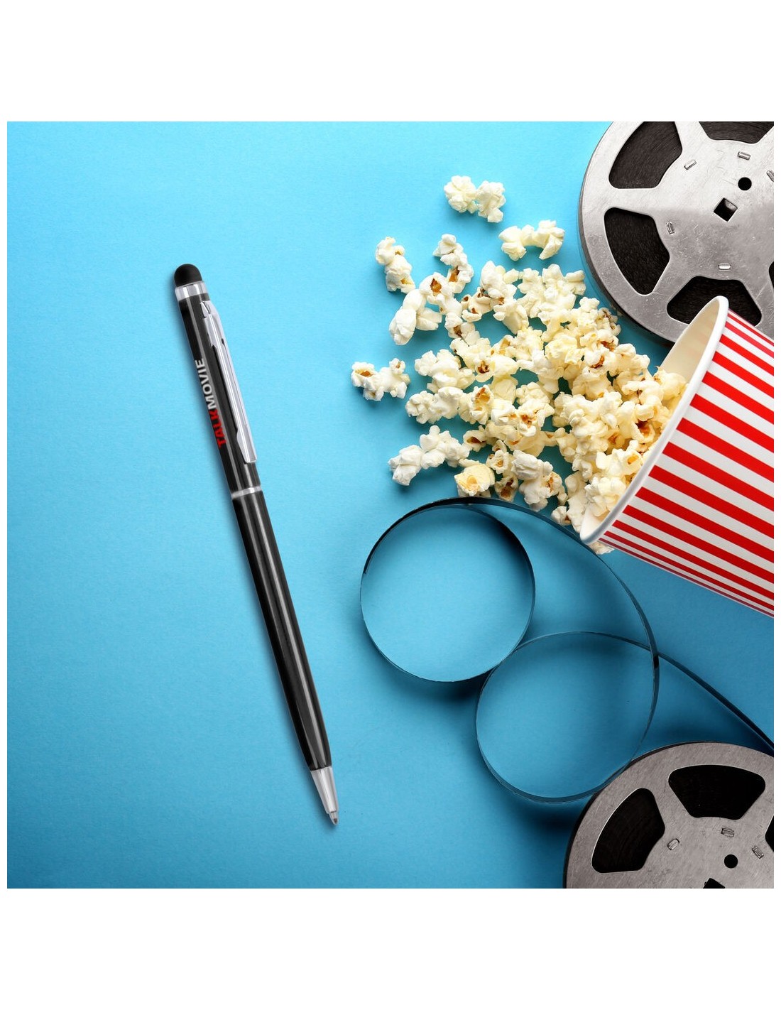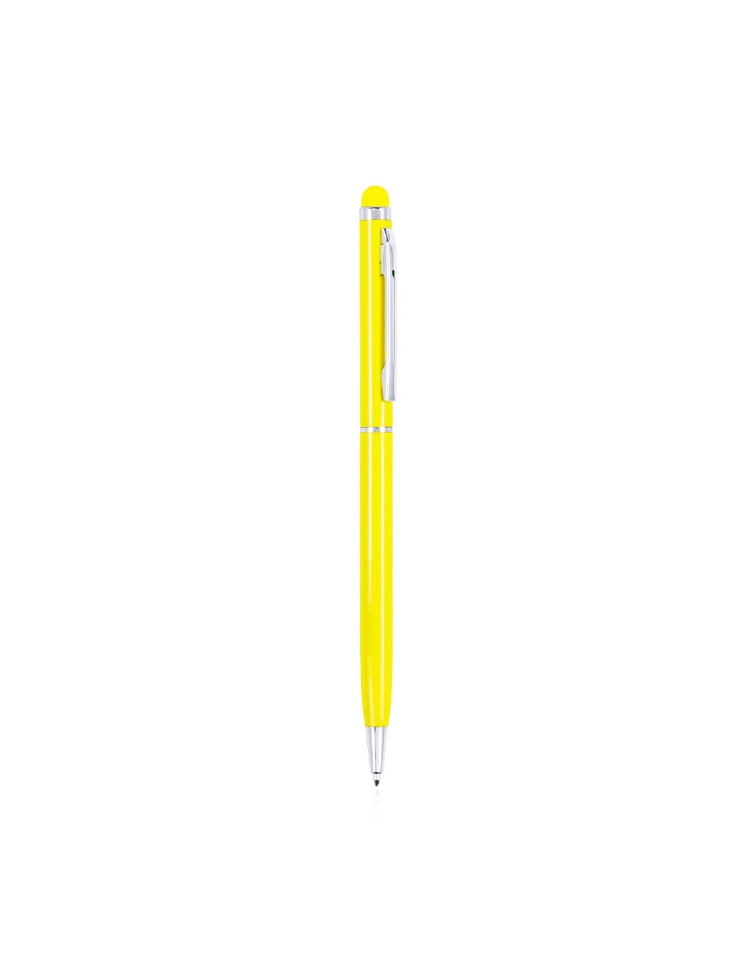 Bolígrafo puntero de mecanismo giratorio con cuerpo ultrafino en aluminio de suave acabado metalizado en variados colores y con puntero a juego. Accesorios y anillas en color plateado. Tinta azul.