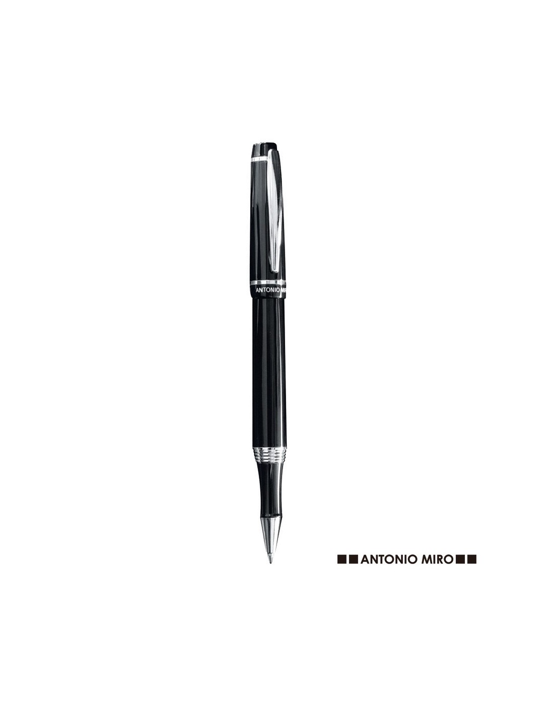 Roller de capucha de Antonio Miró en elegante diseño bicolor y suave cuerpo metálico en sobrio color negro. Con logotipo de la marca bajo la anilla, clip y punta en acabado plateado brillante. Presentado en estuche individual en color negro con logotipo d