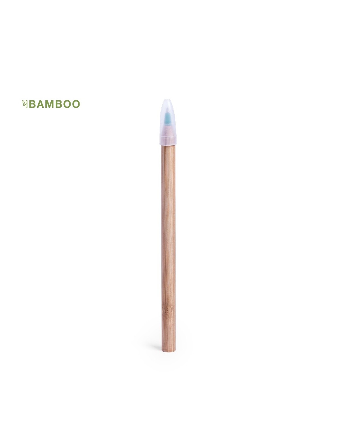Bolígrafo de línea nature con cuerpo en madera de bambú. Diseño minimalista, con punta en variada gama de colores. Capucha transparente y tinta azul.