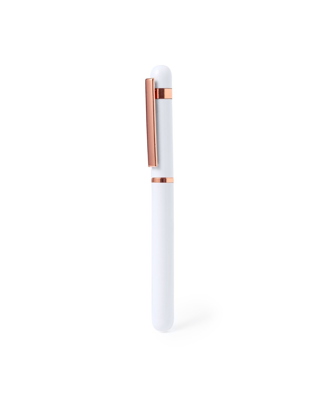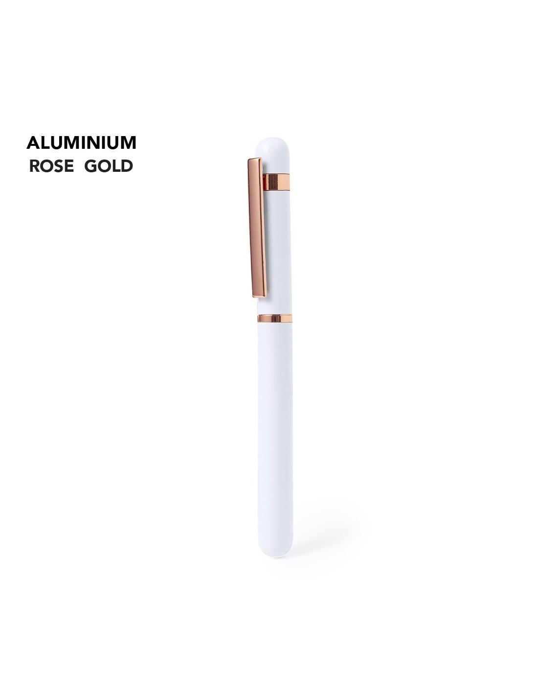 Elegante roller especialmente diseñado para el marcaje en láser con logotipo en color rosado. Con clip metálico y detalles plásticos en acabado rosado. Con cartucho jumbo, en tinta azul y cierre con capucha. Disponible en dos distintivos colores. Presentado en elegante caja de diseño negra.