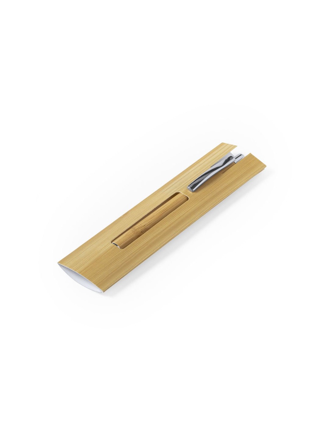 Funda de bolígrafo de línea nature. Fabricada en cartón, con patrón inspirado en las vetas de bambú. Especialmente diseñada para mostrar la publicidad del clip y/o del cuerpo del bolígrafo (bolígrafo no incluido).
