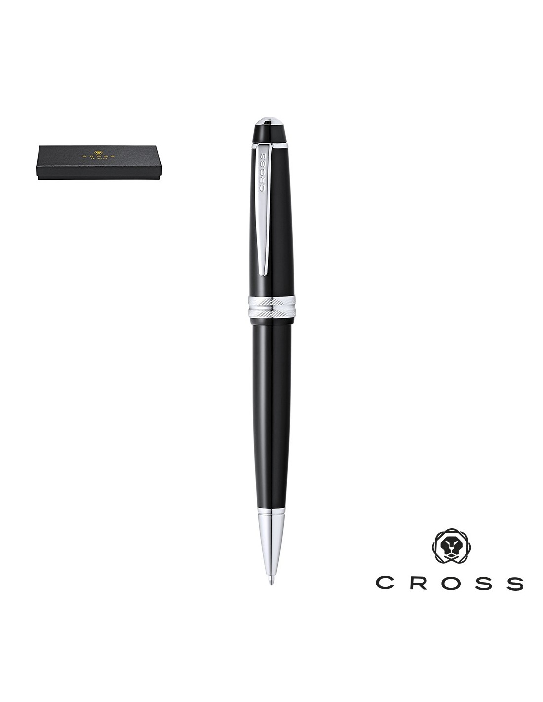 Bolígrafo de Cross modelo Bailey Light, que combina una resina de alto brillo con acabados metálicos de cromo pulido. De cartucho jumbo y en tinta negra. Presentado en elegante estuche individual de color negro con logotipo de la marca, e interior en suave antelina a juego.