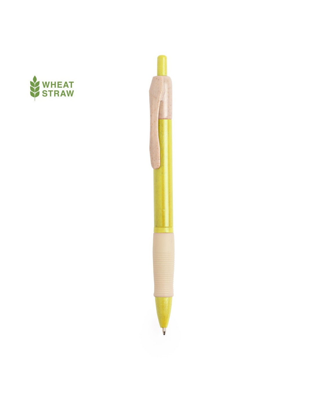 Bolígrafo de línea nature en caña de trigo, para así fomentar la utilización de materias primas naturales y reducir las emisiones contaminantes. Con empuñadura a juego, de mecanismo pulsador y con tinta azul. Disponible en variada gama de colores nature.