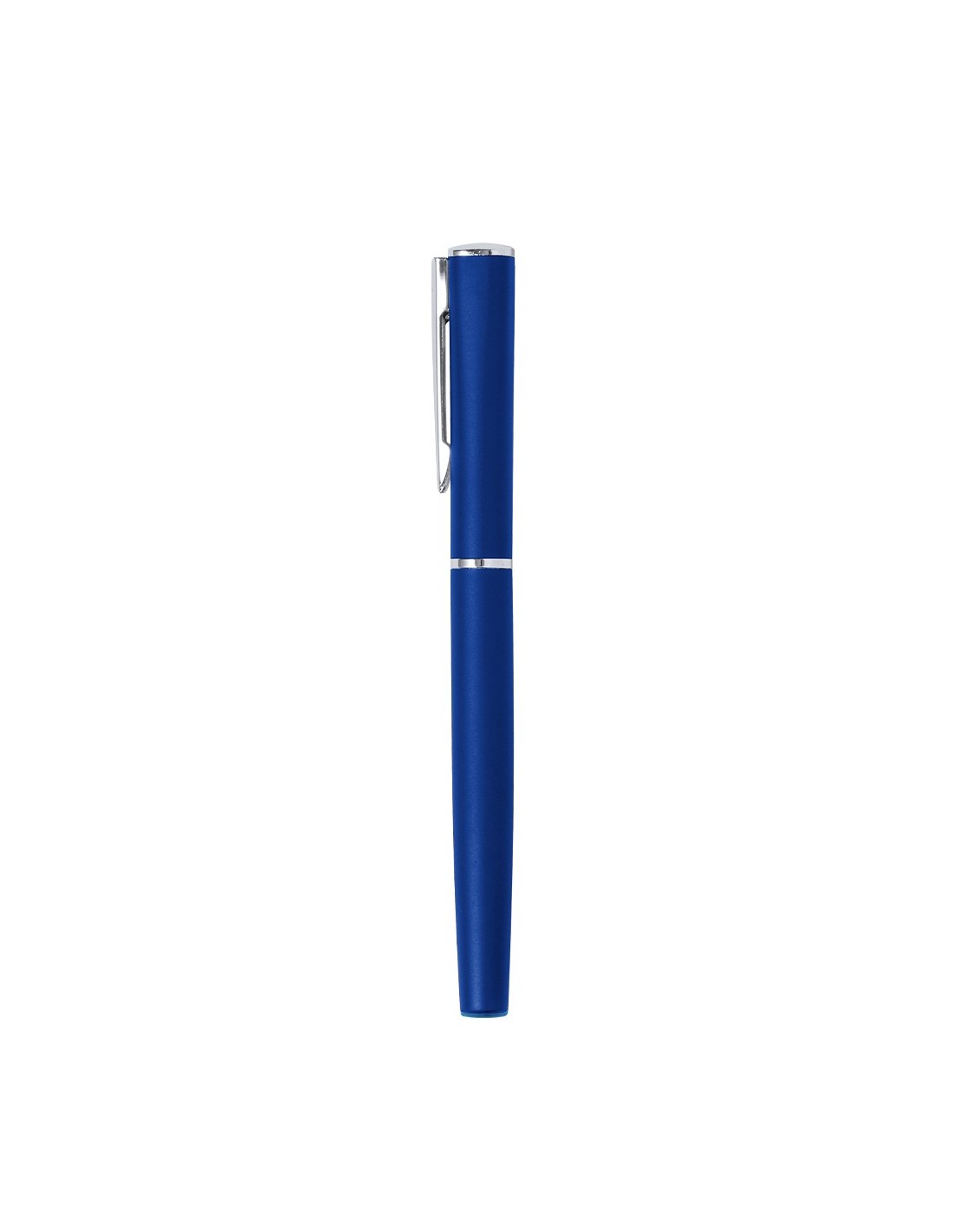 Roller de capucha fabricado en aluminio. De alegre diseño bicolor, con cuerpo de suave acabado en llamativos colores y accesorios en color plateado brillante. En tinta gel azul y presentado individualmente en bolsa reciclada.