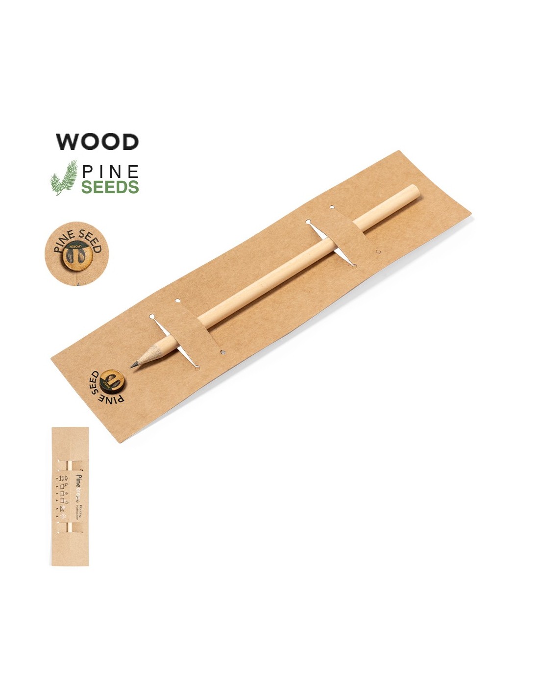 Práctico lápiz con semillas cilíndrico, fabricado en suave madera natural Presentado en un estuche de cartón reciclado que incluye una cápsula de semillas de pino. .El cartón reciclado proviene del reaprovechamiento de excedente de fabricaciones y reciclaje de papel en el final de su vida útil, convirtiéndose en un lienzo ecológico y sostenible.