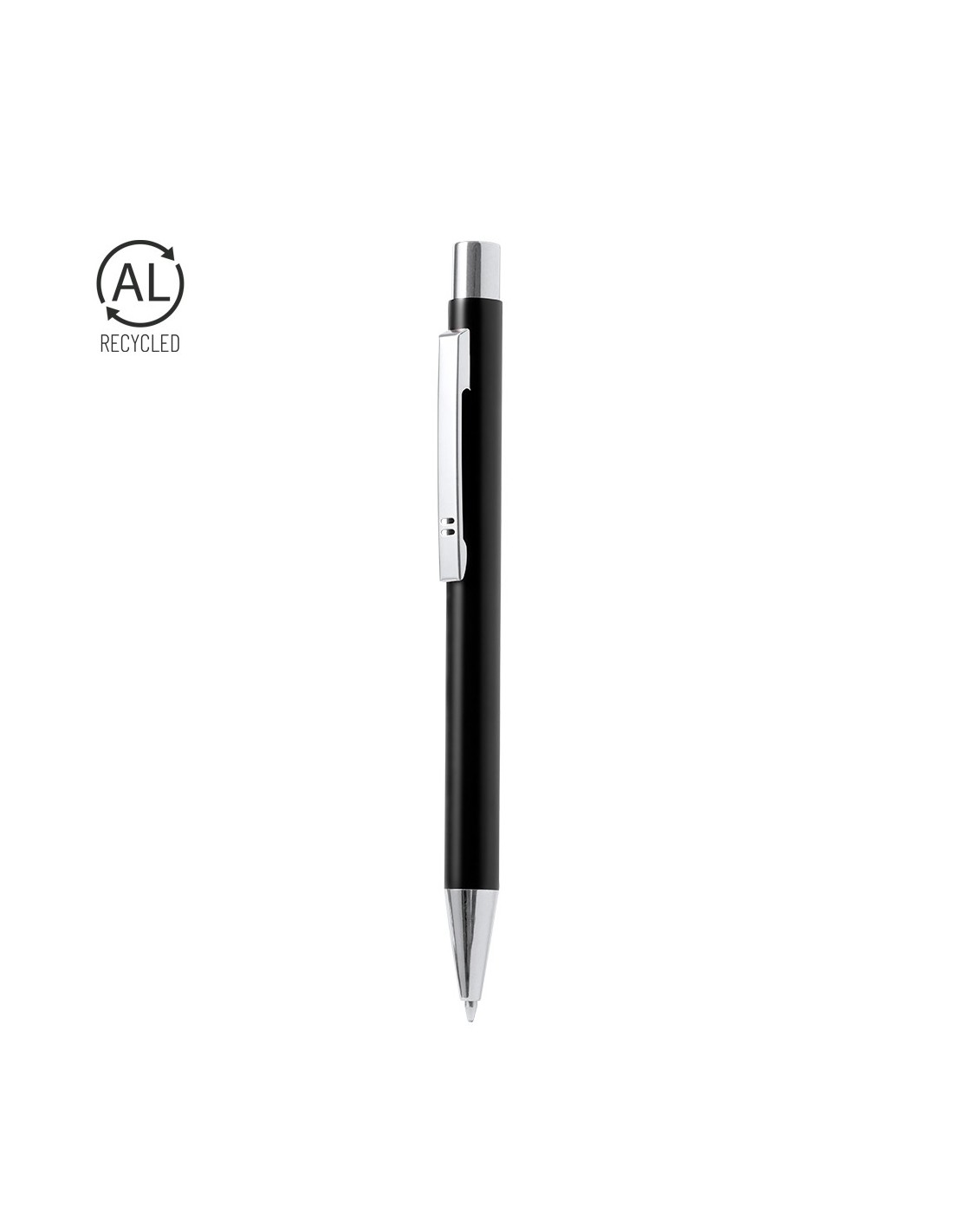 Elegante bolígrafo en Aluminio Reciclado con mecanismo pulsador. Cuerpo en resistente Aluminio Reciclado de acabado brillante, en variada gama de colores. Clip metálico con pulsador retráctil. En tinta azul y con carga jumbo. Presentado en bolsa individual reciclada..El Aluminio Reciclado es un material con posibilidades de reciclaje casi infinitas, sin perder sus propiedades originales y consumiendo menos energía en este proceso..Certificación GRS (Global Recycled Standard / Estándar de Reciclaje Global), que garantiza el origen reciclado del material usado para fabricar el producto.