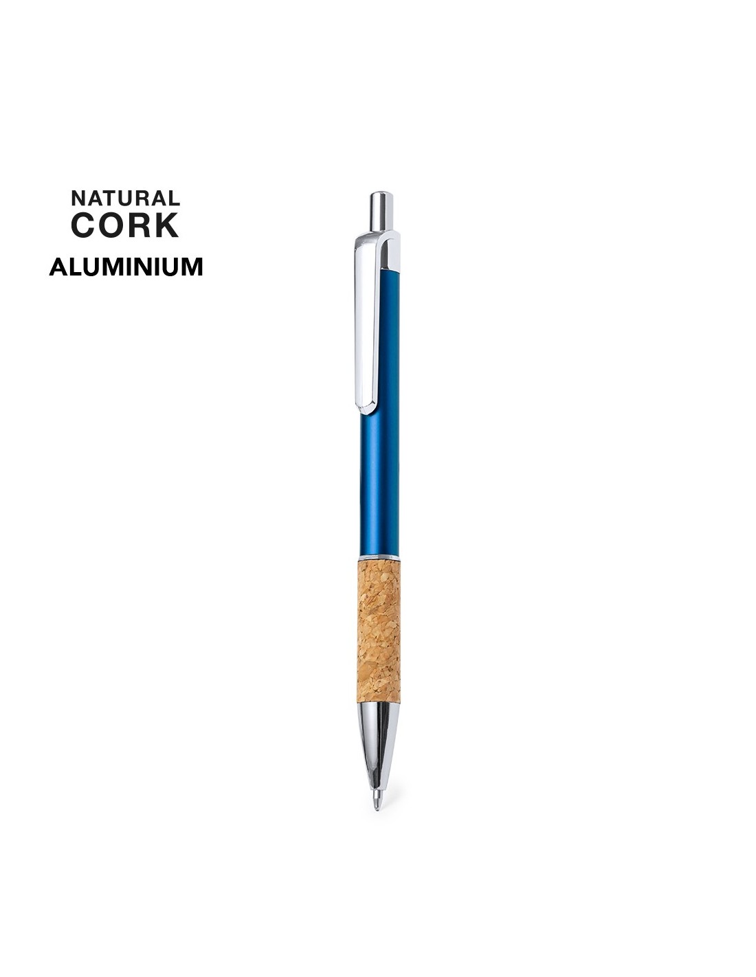 Elegante bolígrafo de corcho y aluminio con mecanismo pulsador. Cuerpo en resistente aluminio de acabado brillante y empuñadura en corcho, con la caña en una amplia gama de distintivos colores. Clip metálico, y en tinta azul. Presentado en bolsa individual reciclada..Elaborado con elementos vegetales para así fomentar la utilización de materias primas naturales y reducir las emisiones contaminantes.