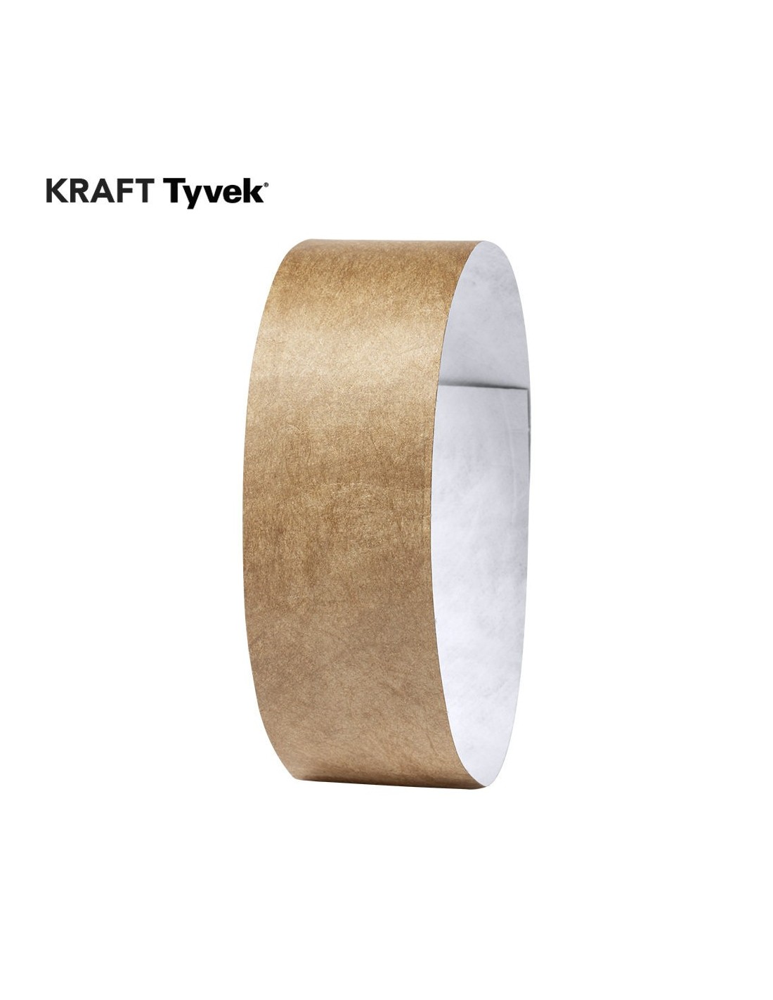 Pulsera para eventos de acabado nature. Fabricada en fibra sintética Tyvek®, que destaca especialmente por su resistencia, flexibilidad, durabilidad y facilidad para la impresión. Con cierre adhesivo, talla única para adulto. Resistente al agua. Presentada en plancha troquelada de 10 piezas con numeración individual.