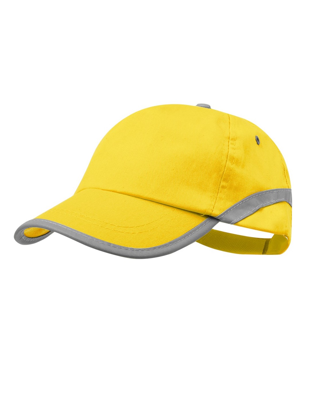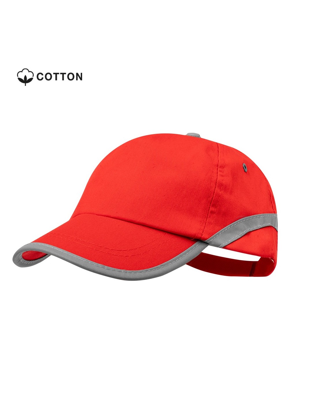 Gorra de 5 paneles en material 100% algodón y tira reflectante en visera y cuerpo. En variada gama de vivo colores, con orificios de ventilación bordados y cierre ajustable de velcro.