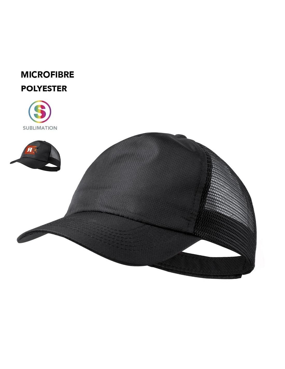 Gorra de 5 paneles en microfibra de poliéster. Con parte trasera de rejilla a juego y cierre de velcro. Disponible en variada gama de colores.