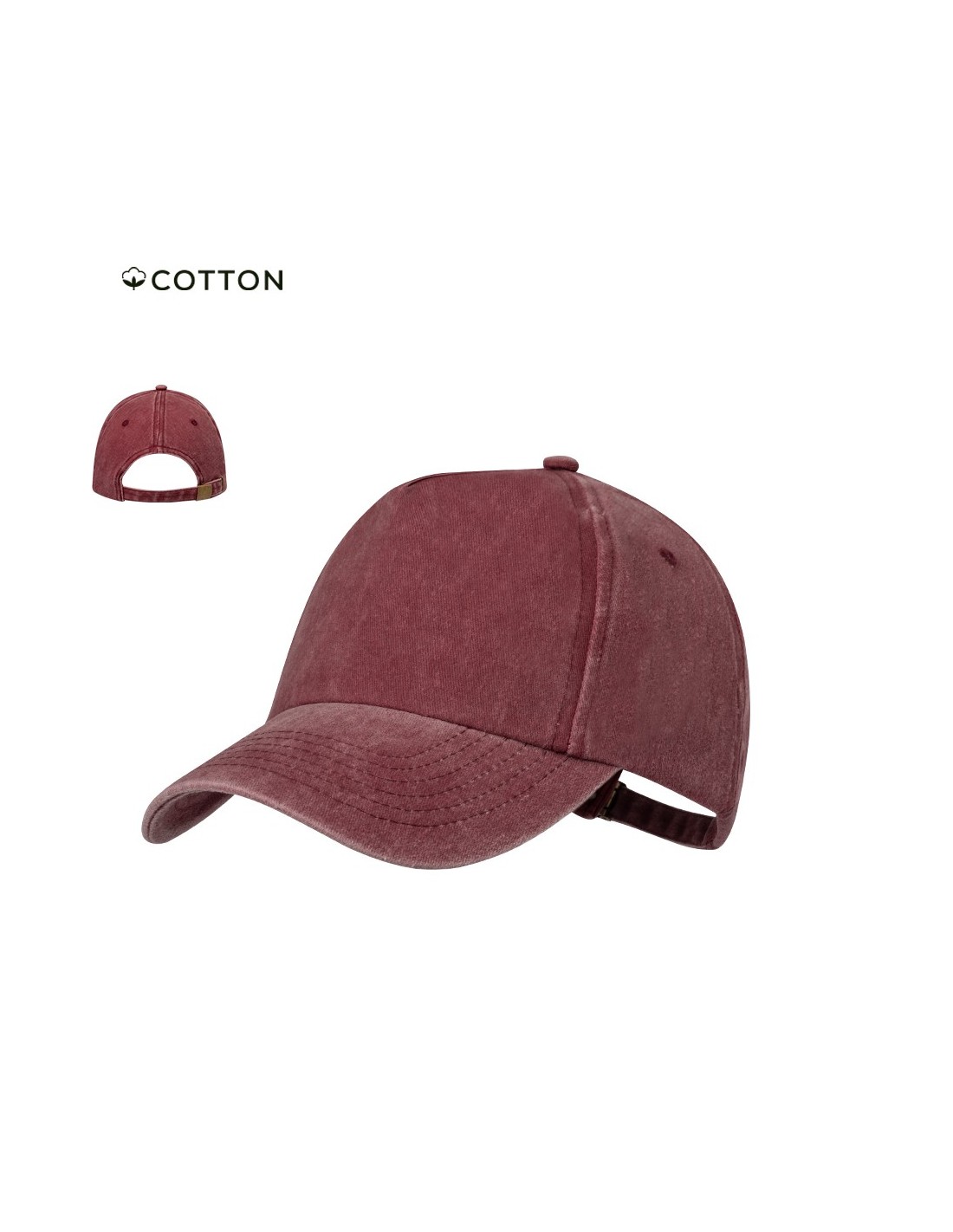 Gorra de 5 paneles de acabado efecto lavado. Fabricada en suave algodón 100%, con orificios de ventilación bordados. Con cierre trasero ajustable de hebilla metálica y disponible en variada gama de colores naturales.