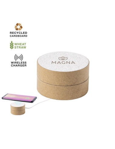 Original cargador inalámbrico circular de línea nature. Carcasa en cartón reciclado, contribuyendo a la conservación de los bosques y reduciendo considerablemente la huella de carbono, con superficie de carga y cable en caña de trigo. Compartimento interior para guardar el cable y poder llevarlo a cualquier lado. Indicador LED de estado de carga, compatible con smartphones con tecnología de carga inalámbrica y presentado en atractiva caja de diseño eco, con manual de instrucciones en español e inglés.
