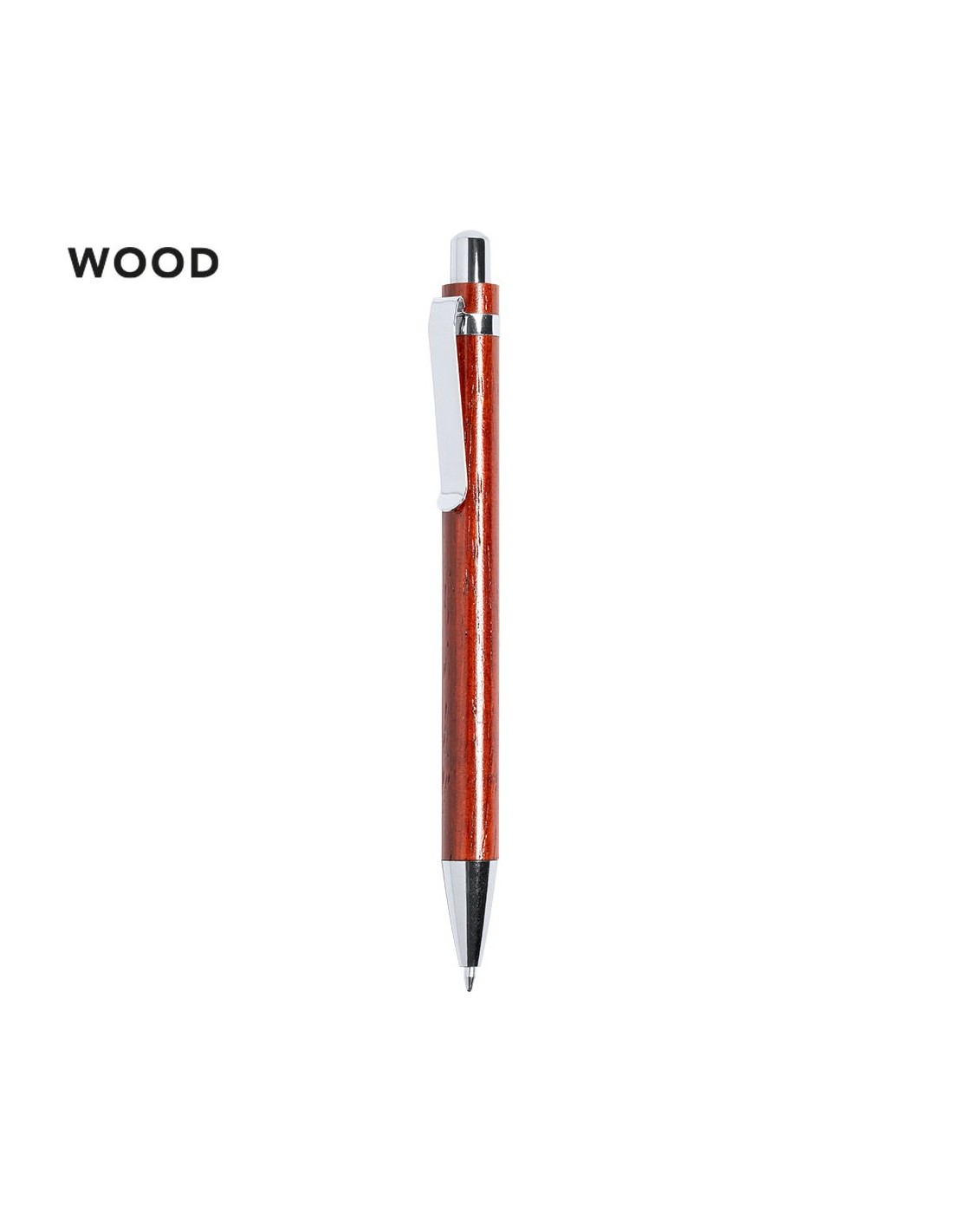 Bolígrafo de línea nature, con cuerpo fabricado madera natural. De mecanismo pulsador y accesorios en cromado, con amplio clip metálico para grabado en láser. De cartucho jumbo y en tinta azul.