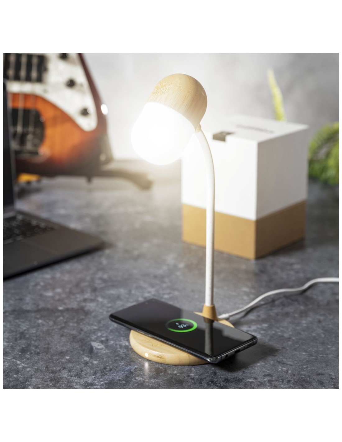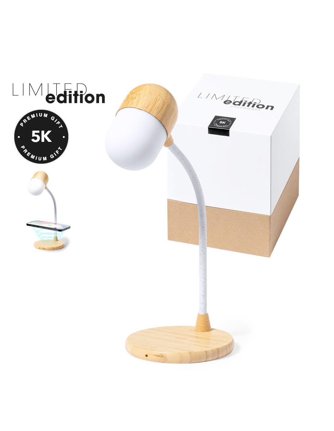 Lámpara Multifunción Limited Edition con función cargador y altavoz. Un moderno y sostenible diseño de calidad premium fabricado en bambú. Con cargador inalámbrico de 10W y altavoz Bluetooth de 3W de potencia integrados. Lámpara con 14 LEDES, 3 tipos de luz (cálida, natural y fría) e intensidad regulable. Ajustable en posición y altura. Compatible con dispositivos móviles de carga inalámbrica, con cable cargador micro USB de 100cm. Disponible manual de instrucciones en Español e Inglés. De la perfecta combinación entre exclusividad y diseño, nace Limited Edition, una colección especial de ideas promocionales de edidición limitada. Un nuevo concepto, inspirado en la fusión de artículos premium con las últimas y más novedosas tendencias y que cuenta con una seleción limitada de unidades, convirtiendo así un regalo en una experiencia única e inolvidable. Exclusivo estuche de presentación Limited Edition, con diseño protegido por derechos de propiedad industrial. Incluida tarjeta con descripción de Limited Edition en cartón reciclado.