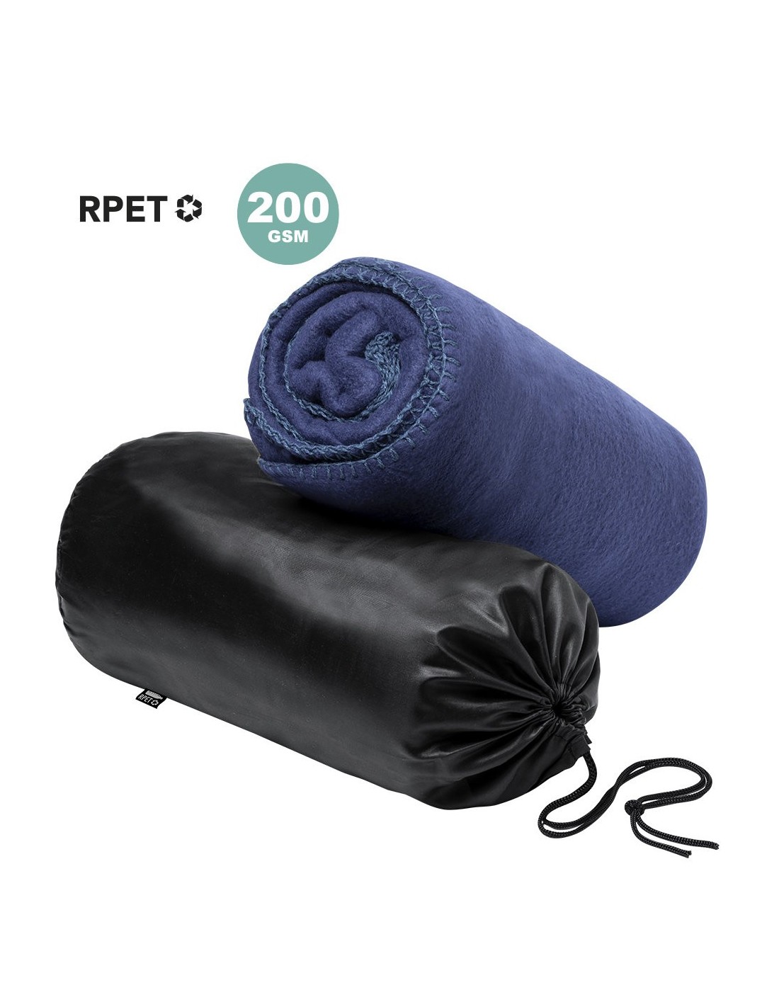 Manta de 120x150cm en variada gama de vivos colores. En material polar fleece RPET de 200g/m2, elaborado a partir de plástico reciclado para así fomentar la reutilización de residuos plásticos y contribuir a la sostenibilidad del planeta. Disponible en variada gama de colores, con funda de cierre de cordón en RPET y distintivo en etiquetas. *Para pedidos con impresión, se debe incrementar el coste del marcaje +0,20/unidad en concepto manipulación especial*