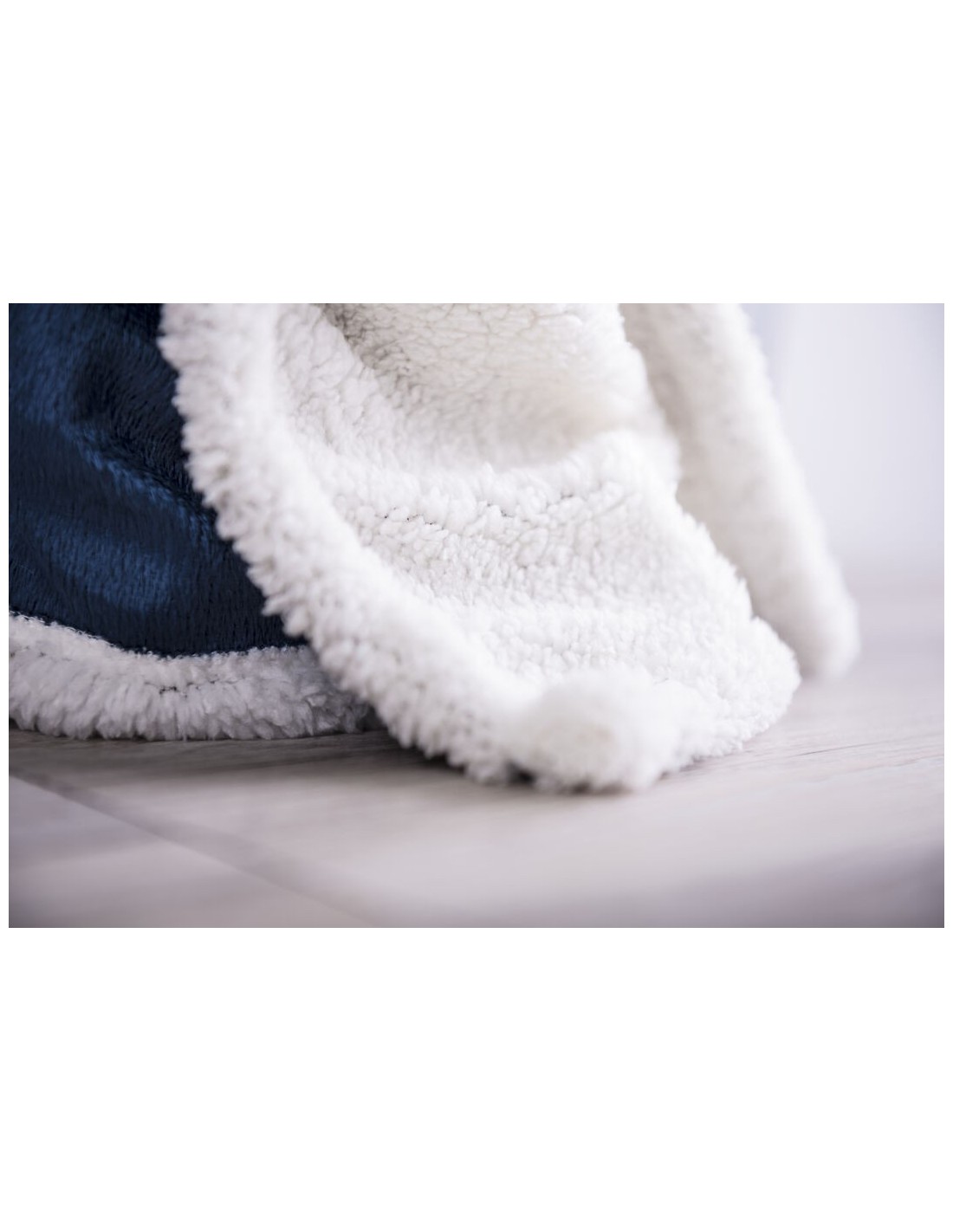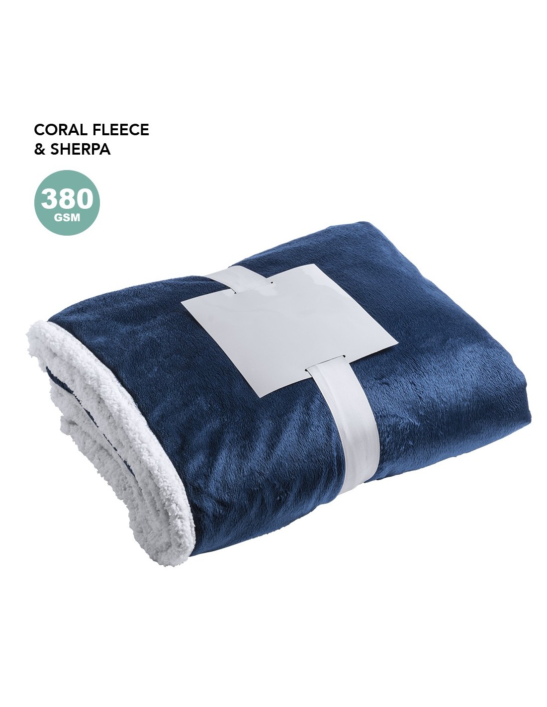 Manta en elegante diseño bicolor de 125x160cm. En suave y cálida combinación de materiales coral fleece y sherpa de 380g/m2. Presentada en cinta con lámina para fácil impresión. *Para pedidos con impresión, se debe incrementar el coste del marcaje + 0,20 / unidad en concepto manipulación especial*