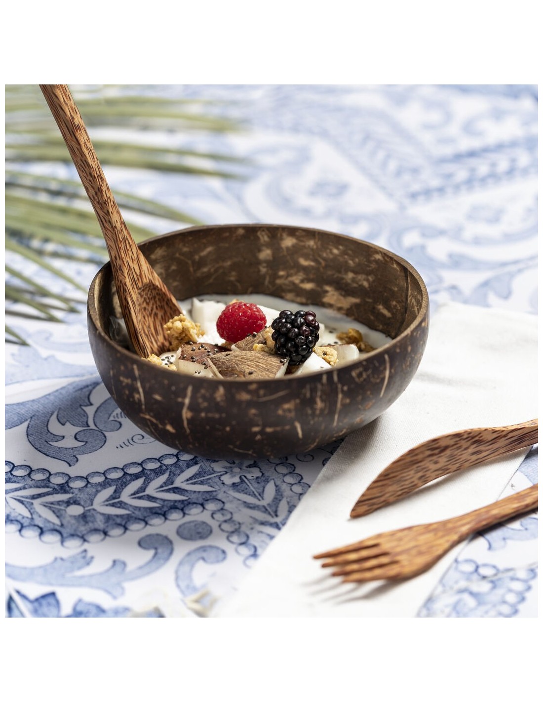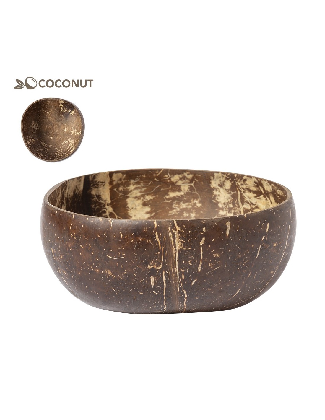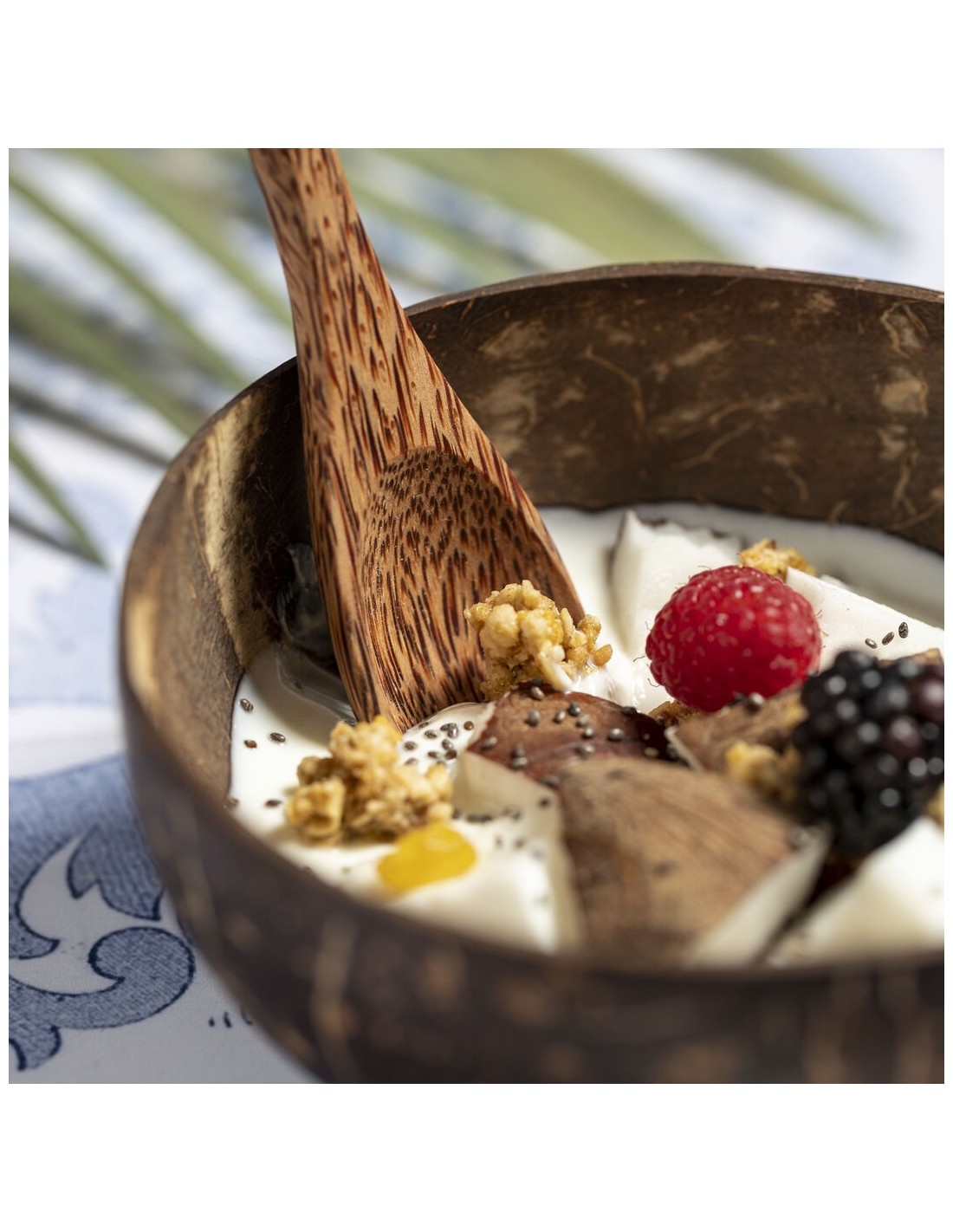 Bowl de línea nature fabricado en coco. Tras el consumo de su fruto, del coco y su planta se pueden obtener multitud de productos, contribuyendo a la sostenibilidad del planeta y fomentando el uso de materias primas naturales. Presentado en caja individual de diseño eco.