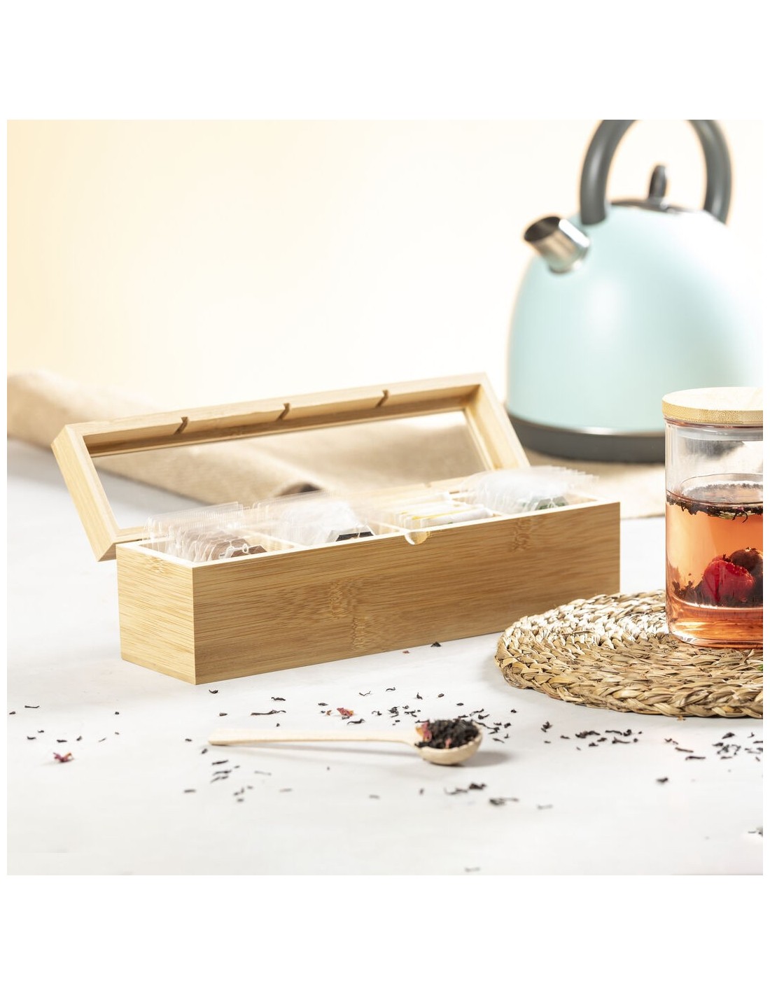 Caja Té. 4 Compartimentos