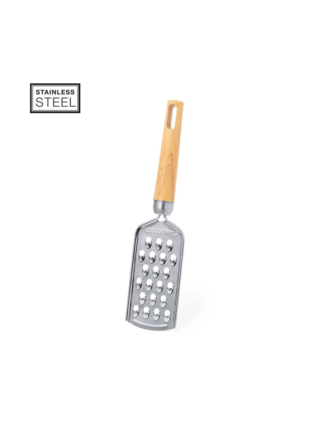 Rallador de mano fabricado en acero inox. Cuenta con un mango ergonómico fabricado en PP, con apertura que permite colgarlo cómodamente. Presentado en bolsa de papel reciclado.
