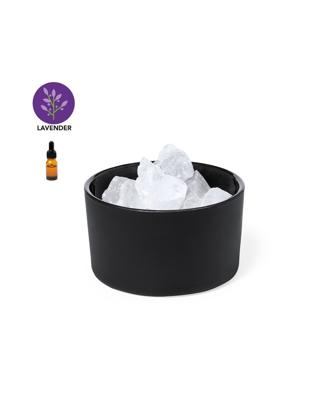 Difusor aromático natural. Utilizando la inducción natural permite la difusión del aroma, aplicando unas gotas sobre las piedras de cristal. Incluye 10 piedras de cristal, un cuenco y 10 ml de aceite aromático con fragancia a lavanda. Presentado en caja de diseño kraft.