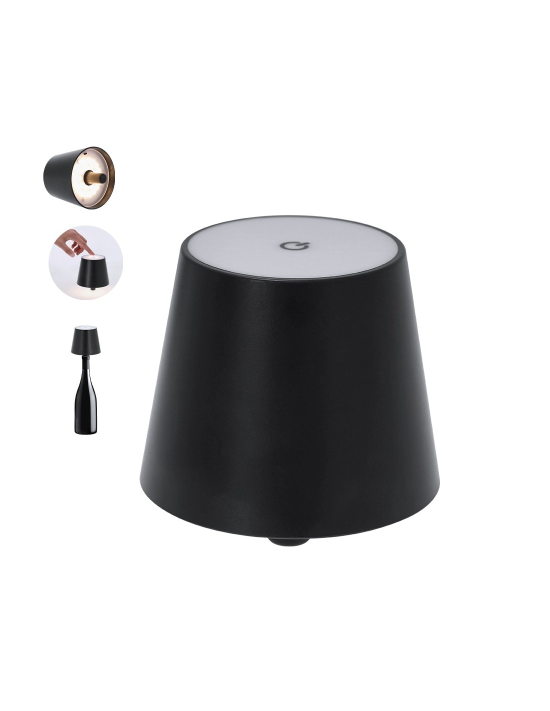 Lámpara LED con adaptador para insertar en la botella, creando así una original lámpara. Con 31 LEDs (27 blancos y 4 amarillos,NULL) de intensidad regulable por botón táctil. Con batería de 800mAh recargable por USB, cable Tipo C incluido.