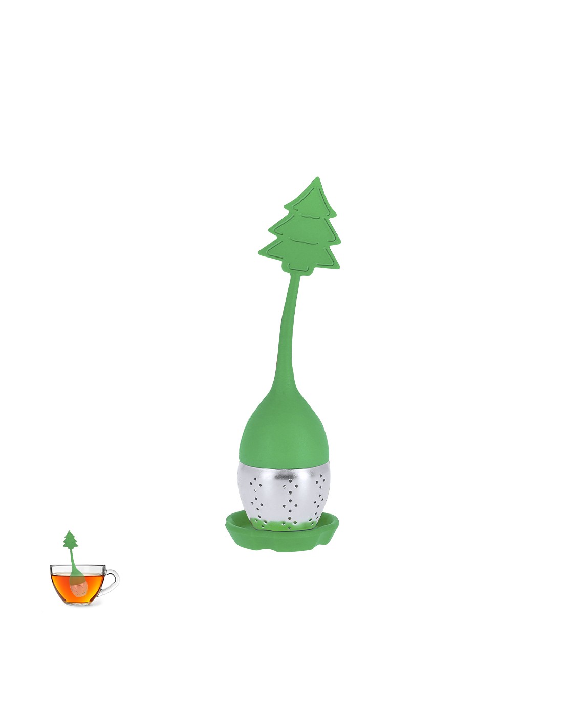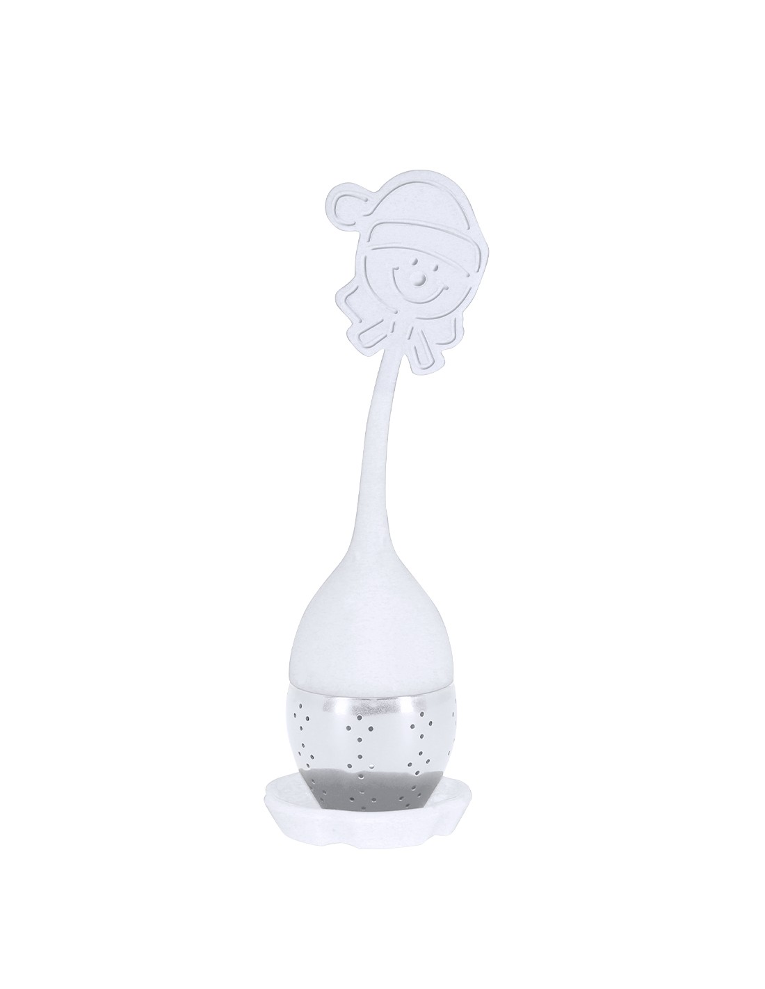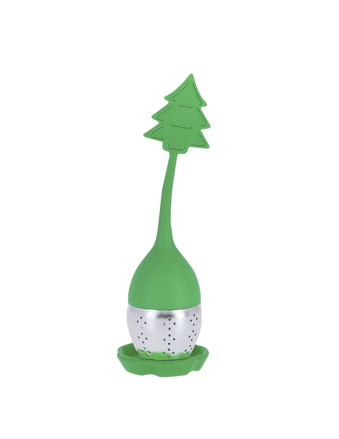 Infusor de té con diseño navideño. Fabricado en silicona y acero inoxidable. Incluye base de silicona, ideal para apoyar el infusor tras su uso, evitando goteos y manteniendo limpia la superficie.