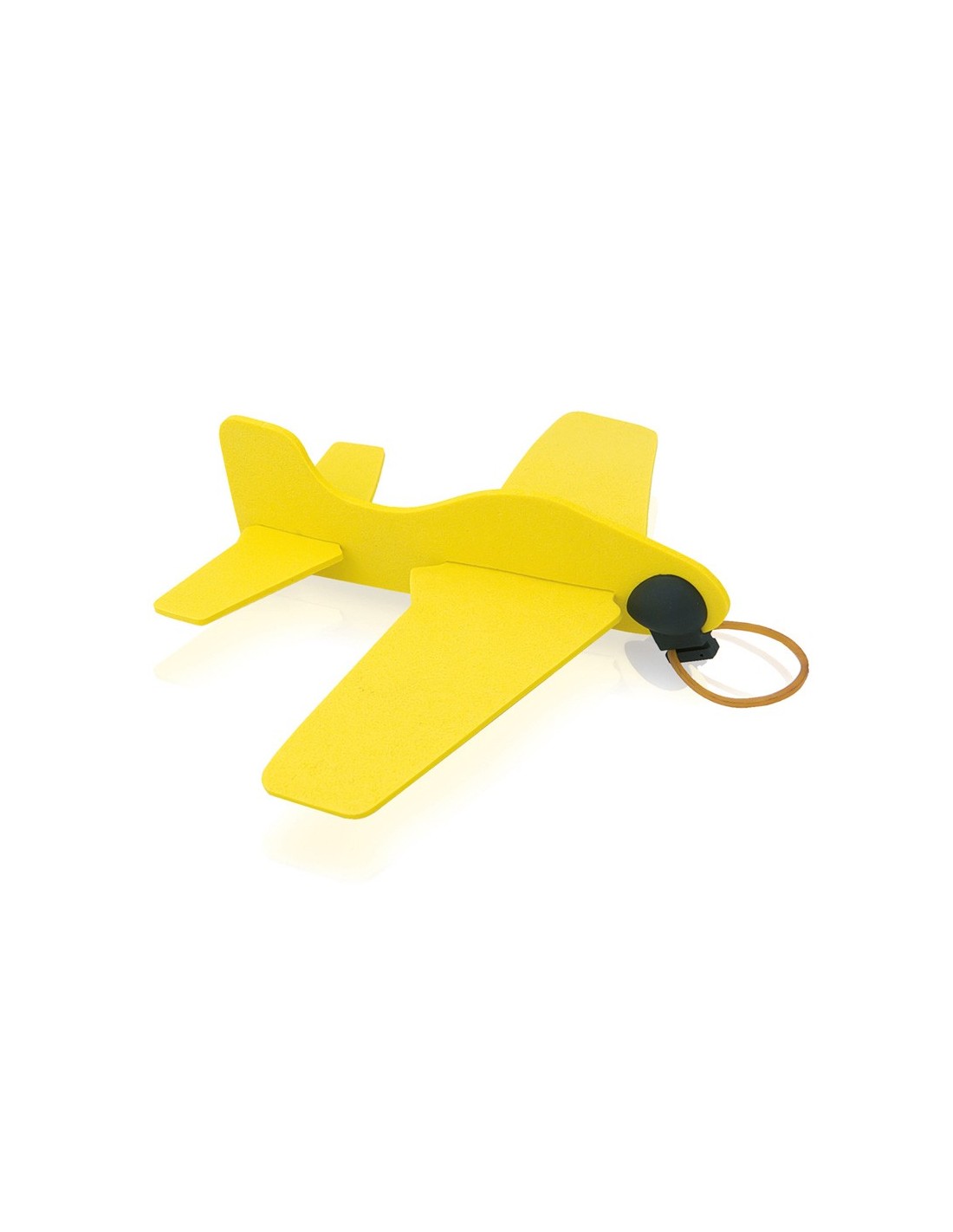 Avioneta desmontable con cuerpo en suave EVA de vivos colores y elástico de lanzamiento. Presentada en pastilla plana para fácil marcaje.