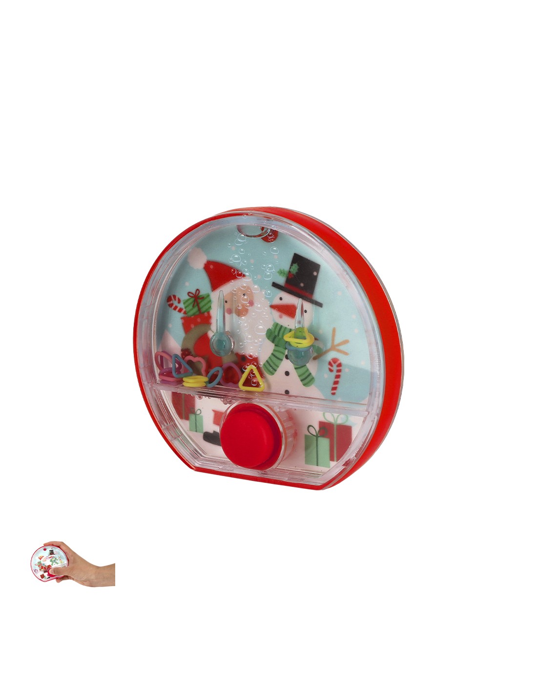 Divertida consola de agua con diseño navideño, fabricada en resistente PS y botón de TPE en color rojo a juego. En su interior, contiene aros de ABS en formas de corazón, triángulo, cuadrado y flor, en alegres colores morado, rosa, azul claro y amarillo. Un clásico pasatiempo, ideal para ejercitar la destreza y la coordinación.