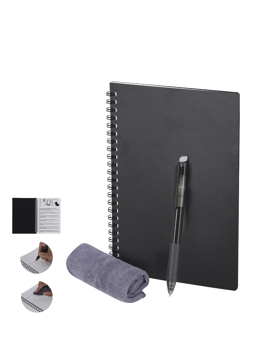 Libreta Borrable. 18 Hojas. Bolígrafo Borrable Tinta Negra y Paño Limpiador Incluido