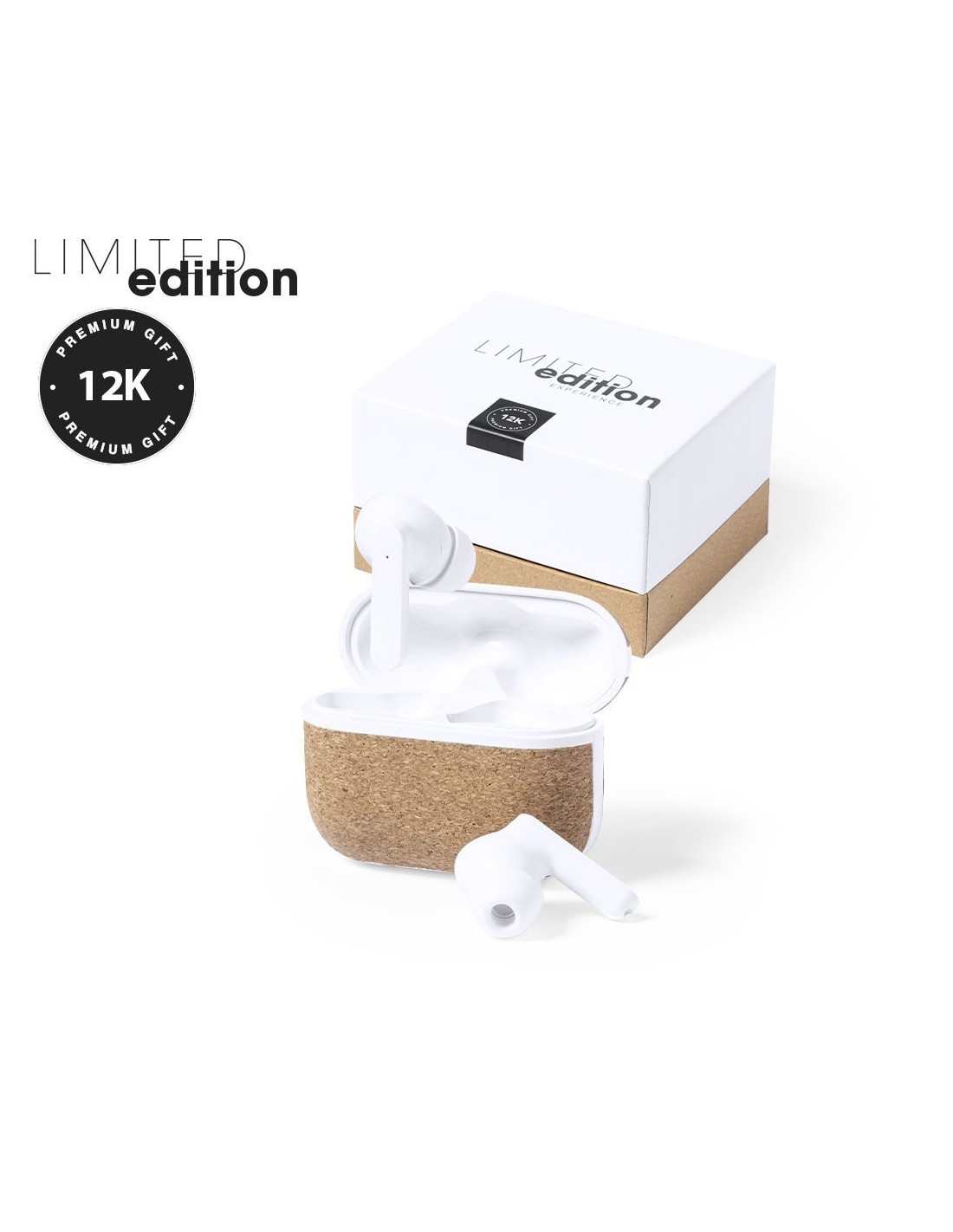 Auriculares intraurales de diseño exclusivo Limited Edition. Con conexión Bluetooth® 5.0, función manos libres y en elegante acabado de color blanco. De diseño ergonómico y con batería de 30 mAh. Incluyen botón de control táctil integrado en el auricular y luz LED de estado de carga. Base de carga a juego, con batería de 300mAh y recubierta en corcho natural, con cable de carga Tipo C incluido. Disponible manual de instrucciones en español e inglés. Presentación en estuche Limited Edition Experience, de diseño único y protegido por derechos de propiedad industrial. Incluida tarjeta en cartón reciclado con descripción Limited Edition. De la perfecta combinación entre exclusividad y diseño nace Limited Edition, una colección especial de ideas promocionales de edición limitada. Un nuevo concepto, inspirado en la fusión de artículos premium con las últimas tendencias, en tiradas de unidades limitadas, y ofreciendo una experiencia de regalo única, exclusiva e inolvidable. Fabricado conforme a los estándares RoHS y en cumplimiento con los siguientes requisitos de seguridad: Sistema de protección contra sobrecalentamiento. Sistema de protección contra sobrecarga. Sistema de bloqueo para evitar cortocircuitos.