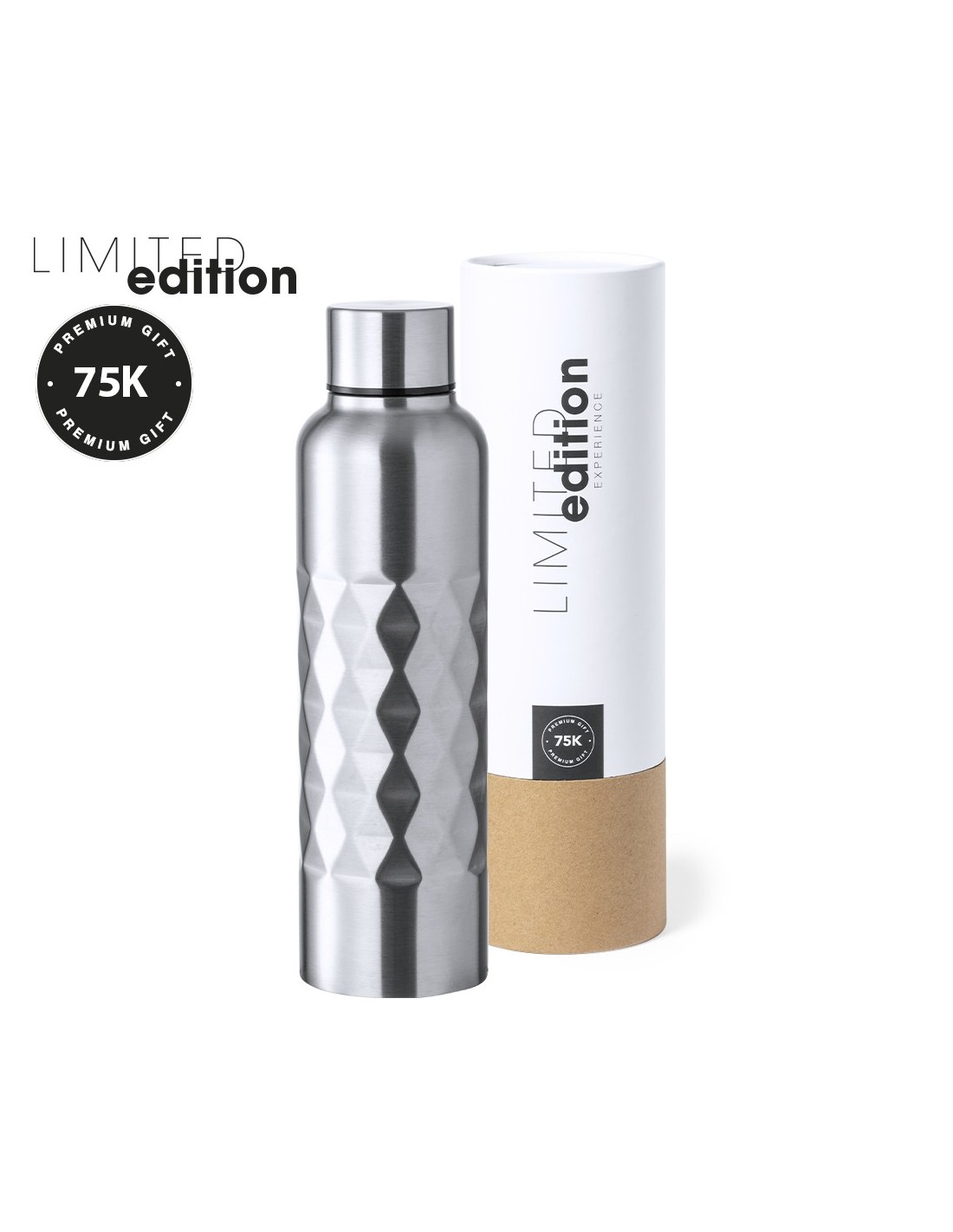 Bidón de diseño exclusivo Limited Edition. De 850 ml de capacidad y fabricado en resistente acero inox de acabado mate, con elegante patrón en rombo alrededor del cuerpo. Presentación en estuche Limited Edition Experience, de diseño único y protegido por derechos de propiedad industrial. Incluida tarjeta en cartón reciclado con descripción Limited Edition. De la perfecta combinación entre exclusividad y diseño nace Limited Edition, una colección especial de ideas promocionales de edición limitada. Un nuevo concepto, inspirado en la fusión de artículos premium con las últimas tendencias, en tiradas de unidades limitadas, y ofreciendo una experiencia de regalo única, exclusiva e inolvidable.