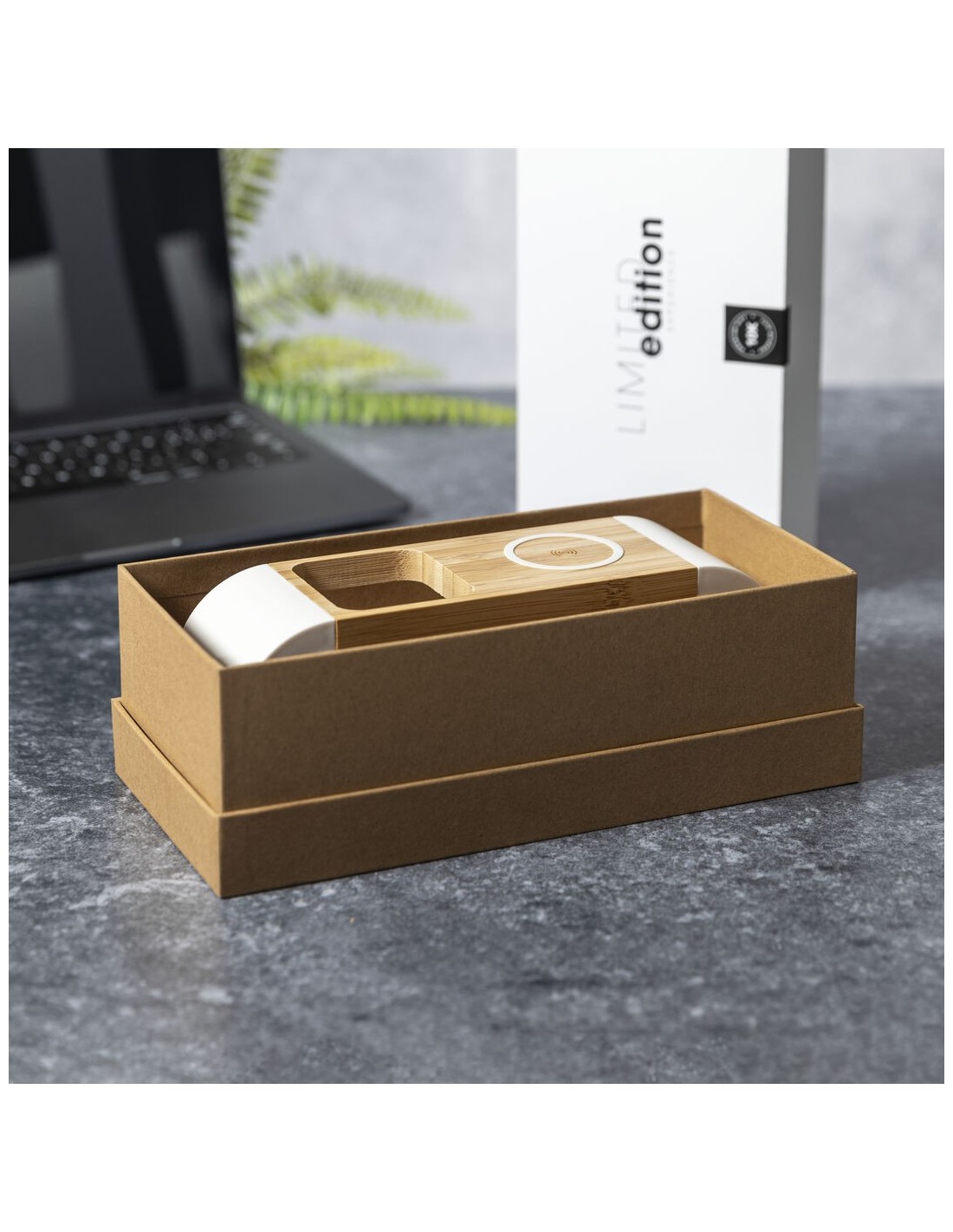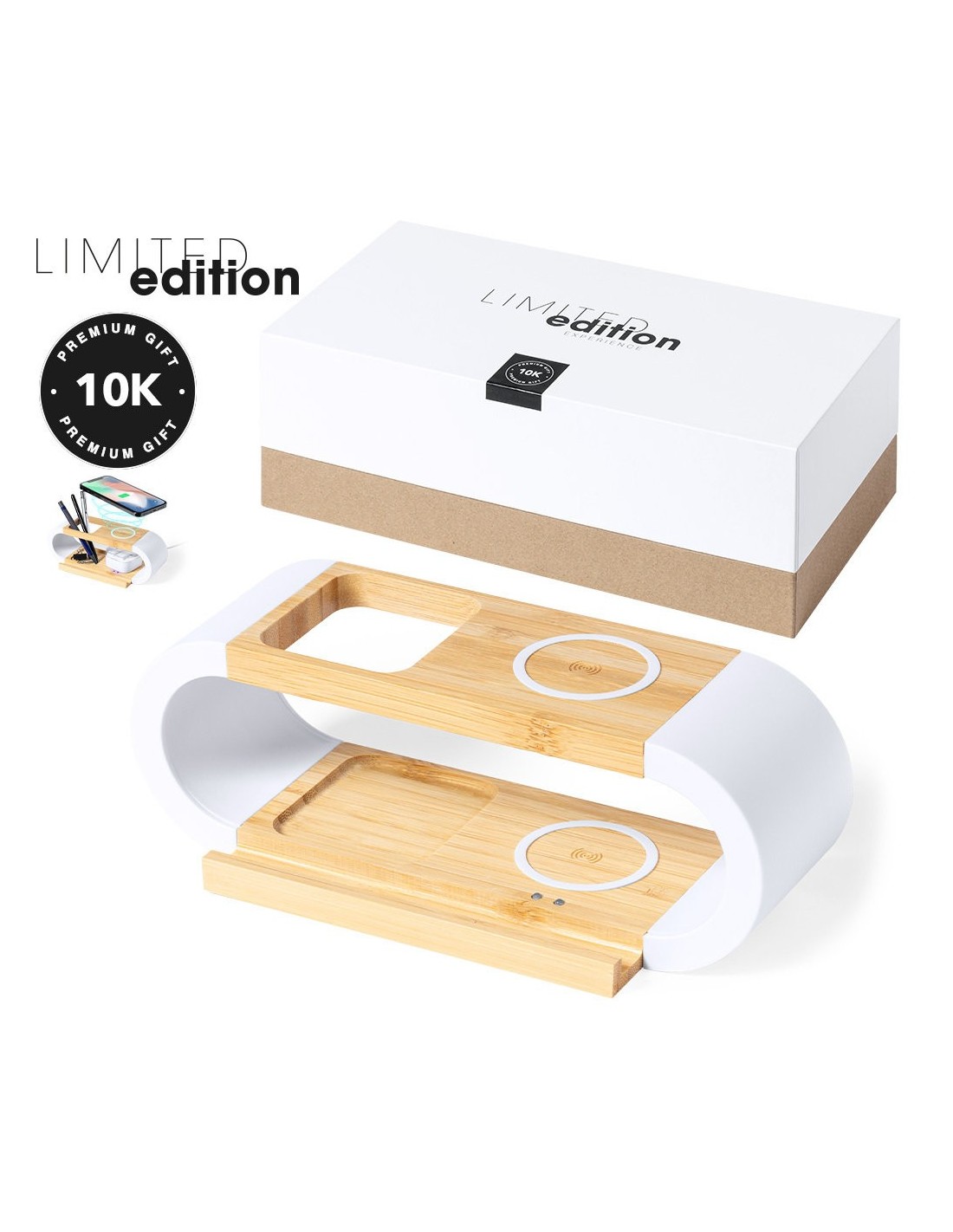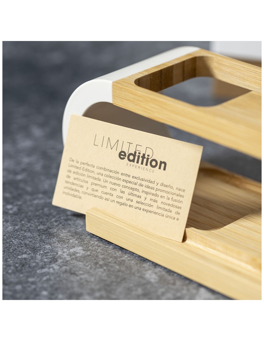 Cargador Organizador Limited Edition con función estación de carga, soporte para dispositivos móviles/ tablets y lapicero/organizador. Un equilibrio entre tecnología, sostenibilidad y funcionalidad que ofrece un innovador y sofisticado diseño.Un exclusivo diseño de calidad premium fabricado en bambú y ABS. Con capacidad de cargar dos dispositivos al mismo tiempo gracias a sus dos cargadores inalámbricos de 10W. Con cable cargador USB C de 100 cm y manual de instrucciones en Español e Inglés incluidos. De la perfecta combinación entre exclusividad y diseño, nace Limited Edition, una colección especial de ideas promocionales de edidición limitada. Un nuevo concepto, inspirado en la fusión de artículos premium con las últimas y más novedosas tendencias y que cuenta con una seleción limitada de unidades, convirtiendo así un regalo en una experiencia única e inolvidable. Exclusivo estuche de presentación Limited Edition,’, con diseño protegido por derechos de propiedad industrial. Incluida tarjeta con descripción de Limited Edition en cartón reciclado.