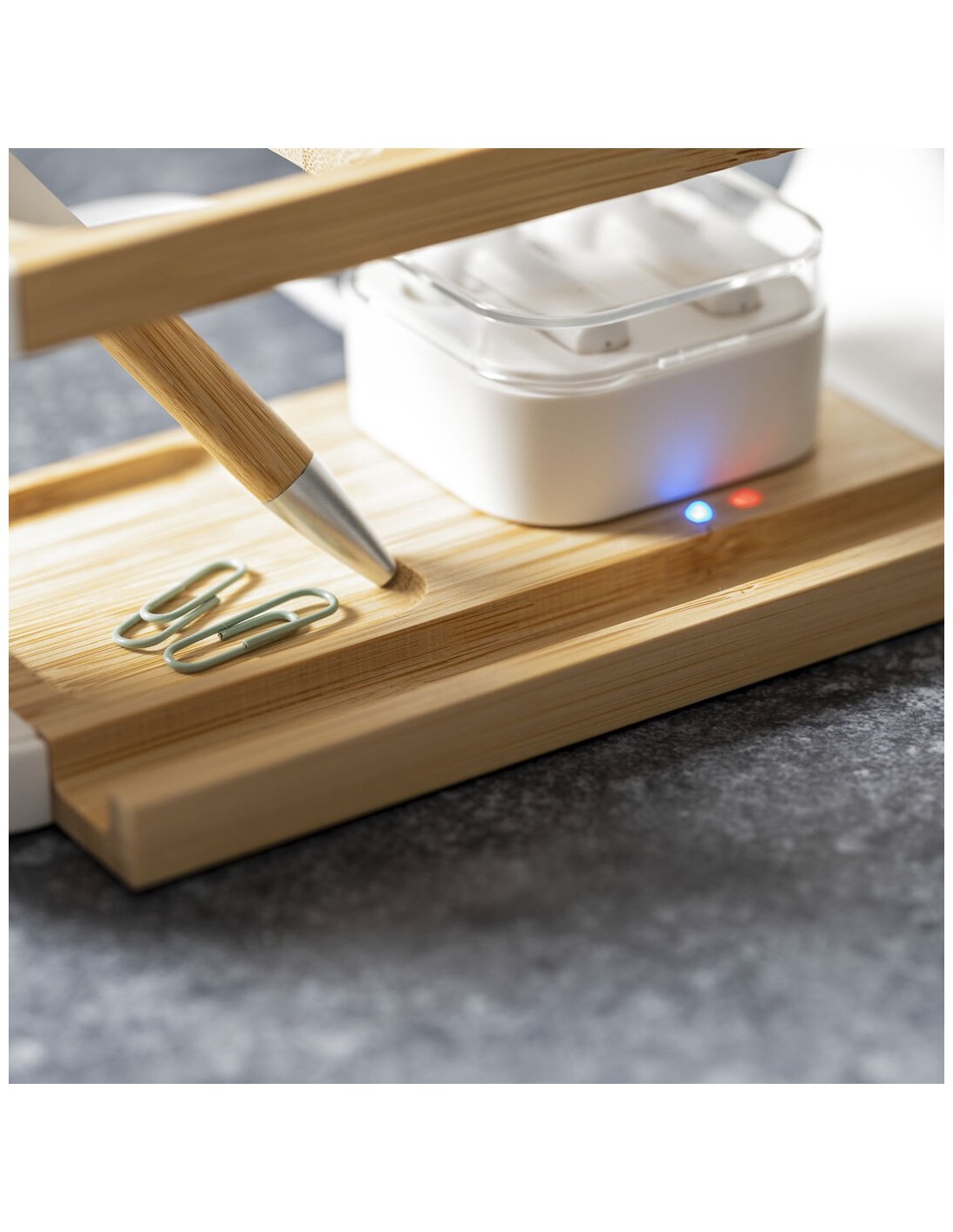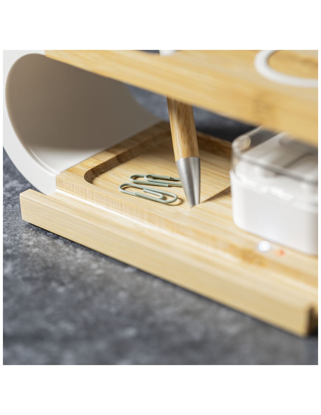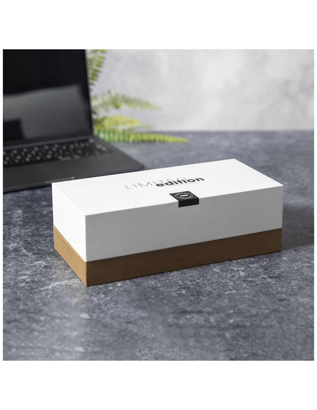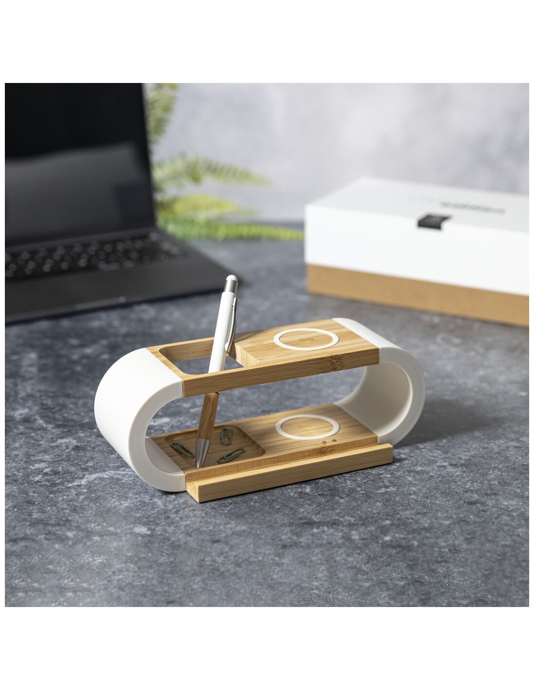 Cargador Organizador Limited Edition con función estación de carga, soporte para dispositivos móviles/ tablets y lapicero/organizador. Un equilibrio entre tecnología, sostenibilidad y funcionalidad que ofrece un innovador y sofisticado diseño.Un exclusivo diseño de calidad premium fabricado en bambú y ABS. Con capacidad de cargar dos dispositivos al mismo tiempo gracias a sus dos cargadores inalámbricos de 10W. Con cable cargador USB C de 100 cm y manual de instrucciones en Español e Inglés incluidos. De la perfecta combinación entre exclusividad y diseño, nace Limited Edition, una colección especial de ideas promocionales de edidición limitada. Un nuevo concepto, inspirado en la fusión de artículos premium con las últimas y más novedosas tendencias y que cuenta con una seleción limitada de unidades, convirtiendo así un regalo en una experiencia única e inolvidable. Exclusivo estuche de presentación Limited Edition,’, con diseño protegido por derechos de propiedad industrial. Incluida tarjeta con descripción de Limited Edition en cartón reciclado.