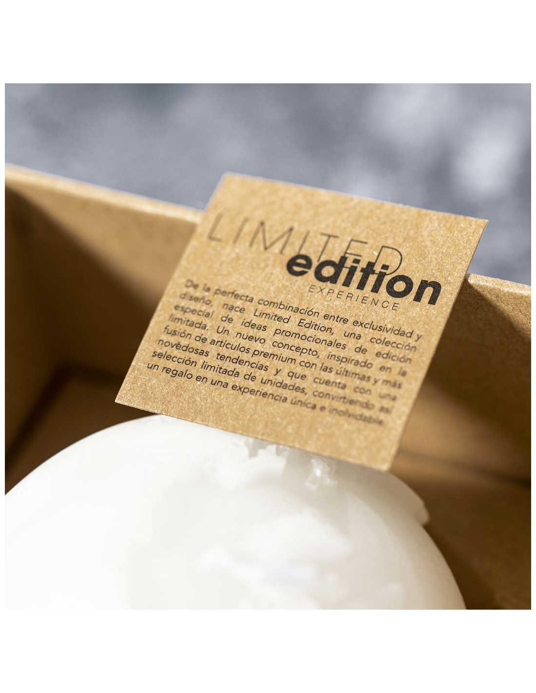 Vela aromática Limited Edition. Envolverse en la sensación de encedender una vela y trasladarse a través de su aroma a vainilla y diseño de bola del mundo. Un regalo ideal para crear ambientes de calma, despertar infinidad de sentimientos y sensaciones o formar parte de la decoración. Incluye base de soporte en bambú natural. De la perfecta combinación entre exclusividad y diseño, nace Limited Edition, una colección especial de ideas promocionales de edidición limitada. Un nuevo concepto, inspirado en la fusión de artículos premium con las últimas y más novedosas tendencias y que cuenta con una seleción limitada de unidades, convirtiendo así un regalo en una experiencia única e inolvidable. Exclusivo estuche de presentación Limited Edition,’, con diseño protegido por derechos de propiedad industrial. Incluida tarjeta con descripción de Limited Edition en cartón reciclado.