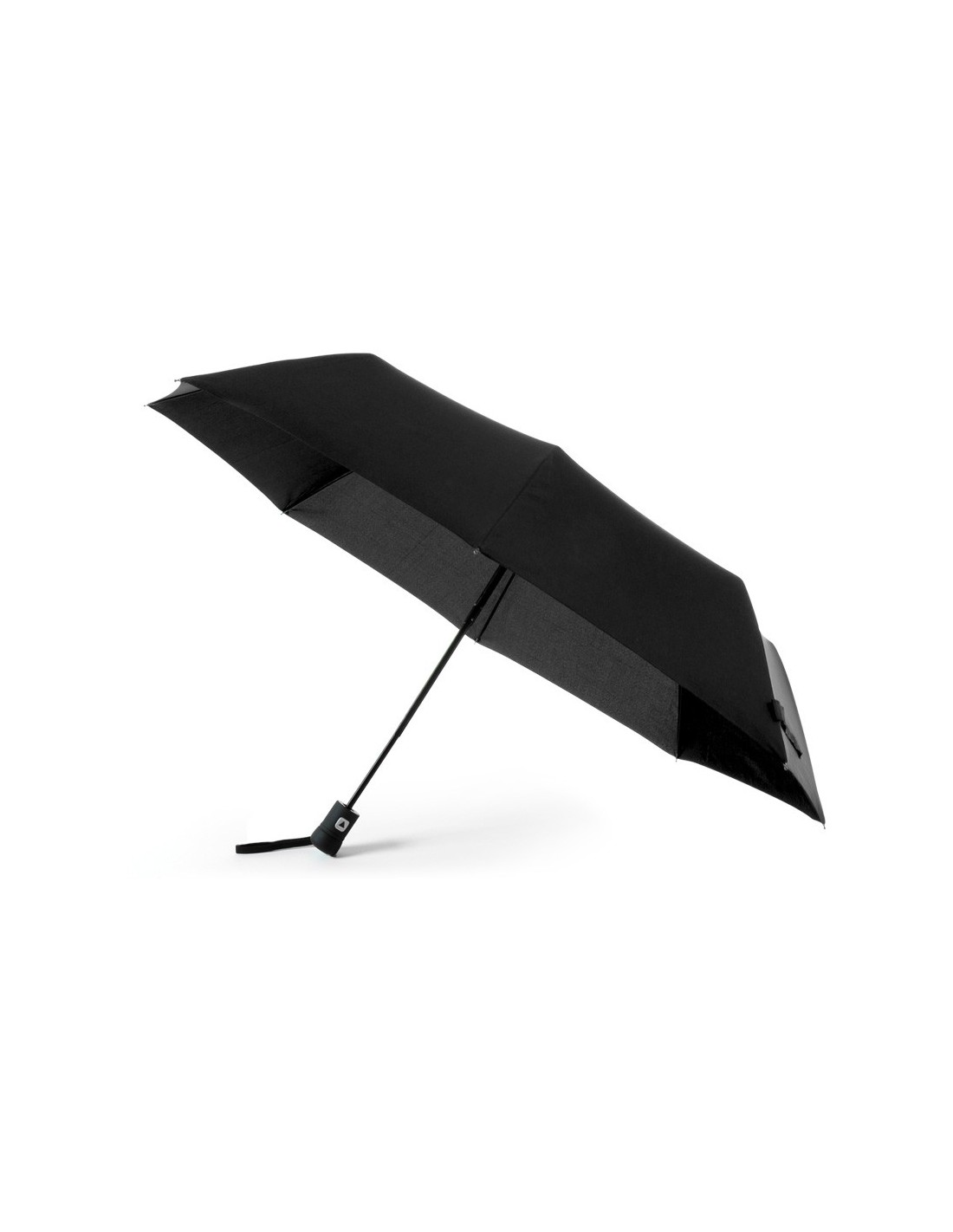 Paraguas plegable de alta calidad de 8 paneles en sobrios colores. De 98cm de diámetro, con apertura automática y en resistente material pongee. Con varillas metálicas en color negro, cierre de velcro y mango ergonómico con cinta de transporte. Presentado