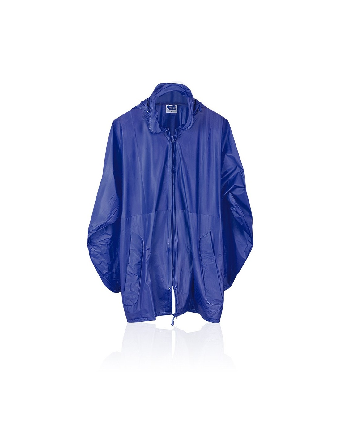 Impermeable en resistente PVC de acabado termosellado en variada gama de colores. Con capucha de cremallera integrada en cuello, cierre principal de cremallera y con bolsillos laterales. Convertible en riñonera con cintas elásticas y cierre de buckle a ju
